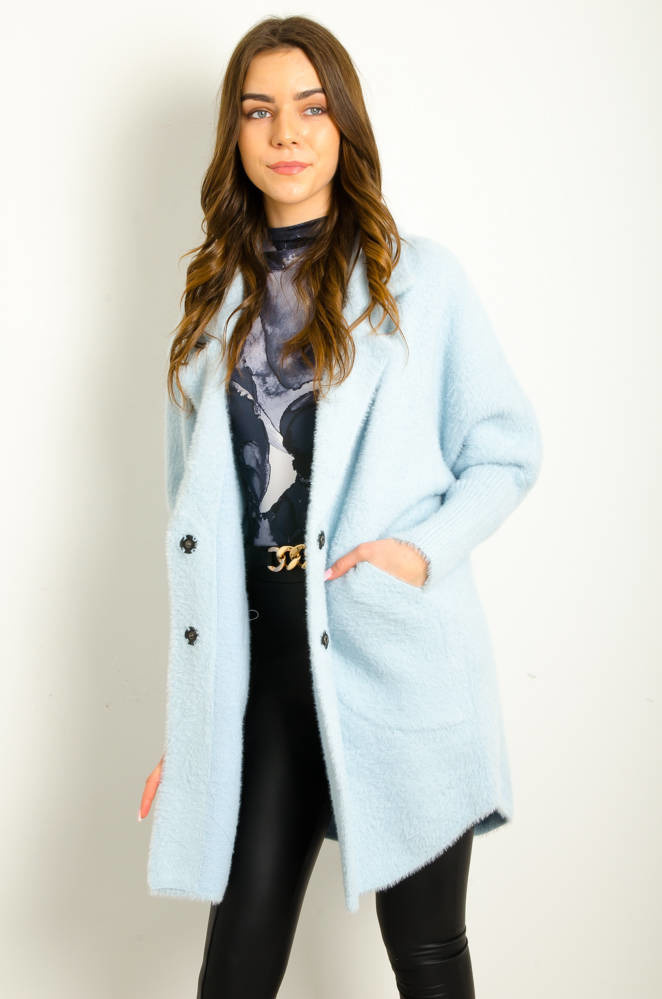 PŁASZCZ DŁUGI WEŁNIANY ALPAKA- JASNO-NIEBIESKI