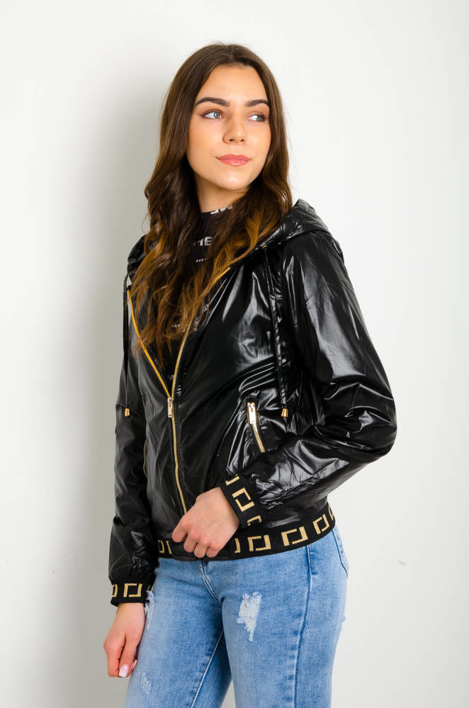 CZARNA POŁYSKUJĄCA KURTKA WIOSENNA Z KAPTUREM