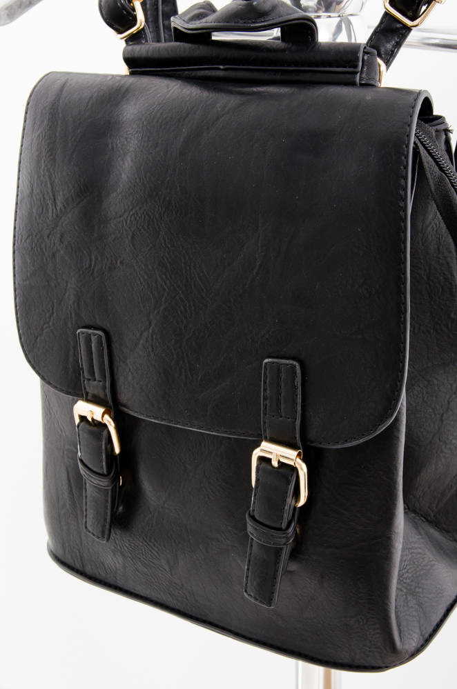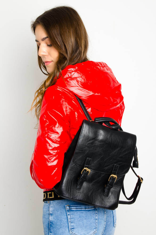 CZARNY PLECAK Z IMITACJI SKÓRY Z OZDOBNYM ZAPIĘCIEM