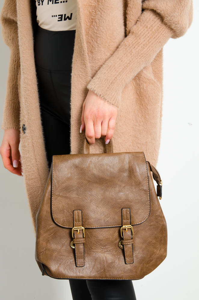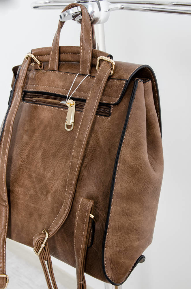 BRĄZOWY PLECAK Z IMITACJI SKÓRY Z OZDOBNYM ZAPIĘCIEM