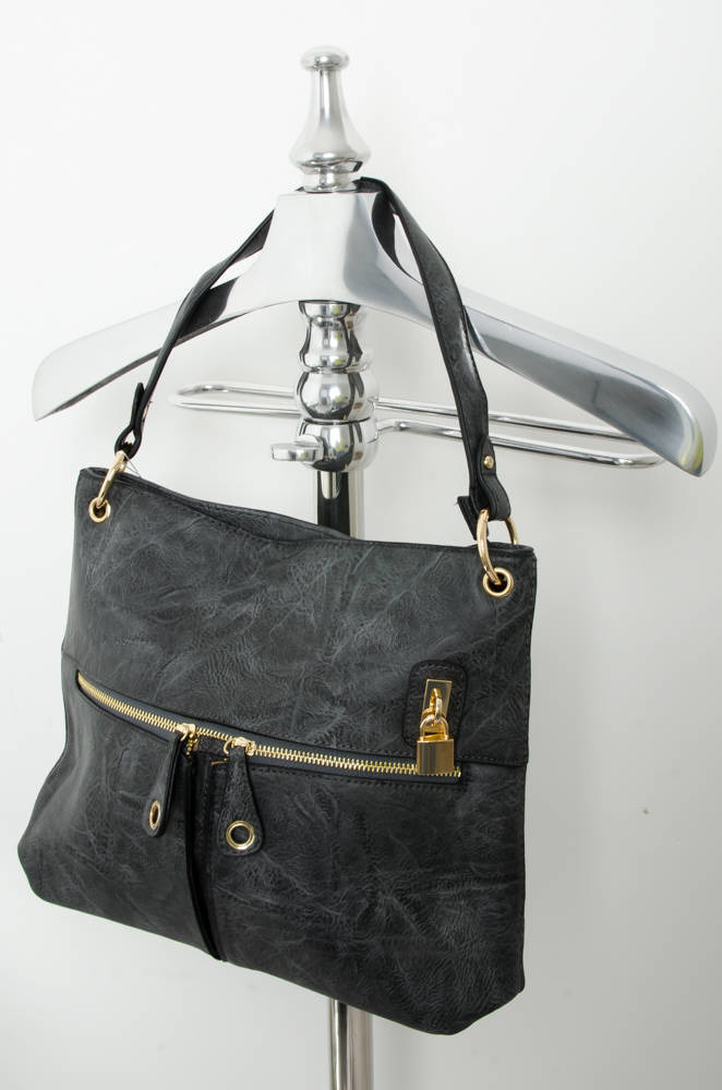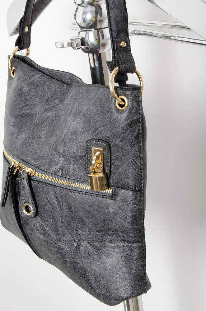 SZARA TOREBKA SHOPPER Z OZDOBNYM PRZESZYCIEM I ZAMKAMI