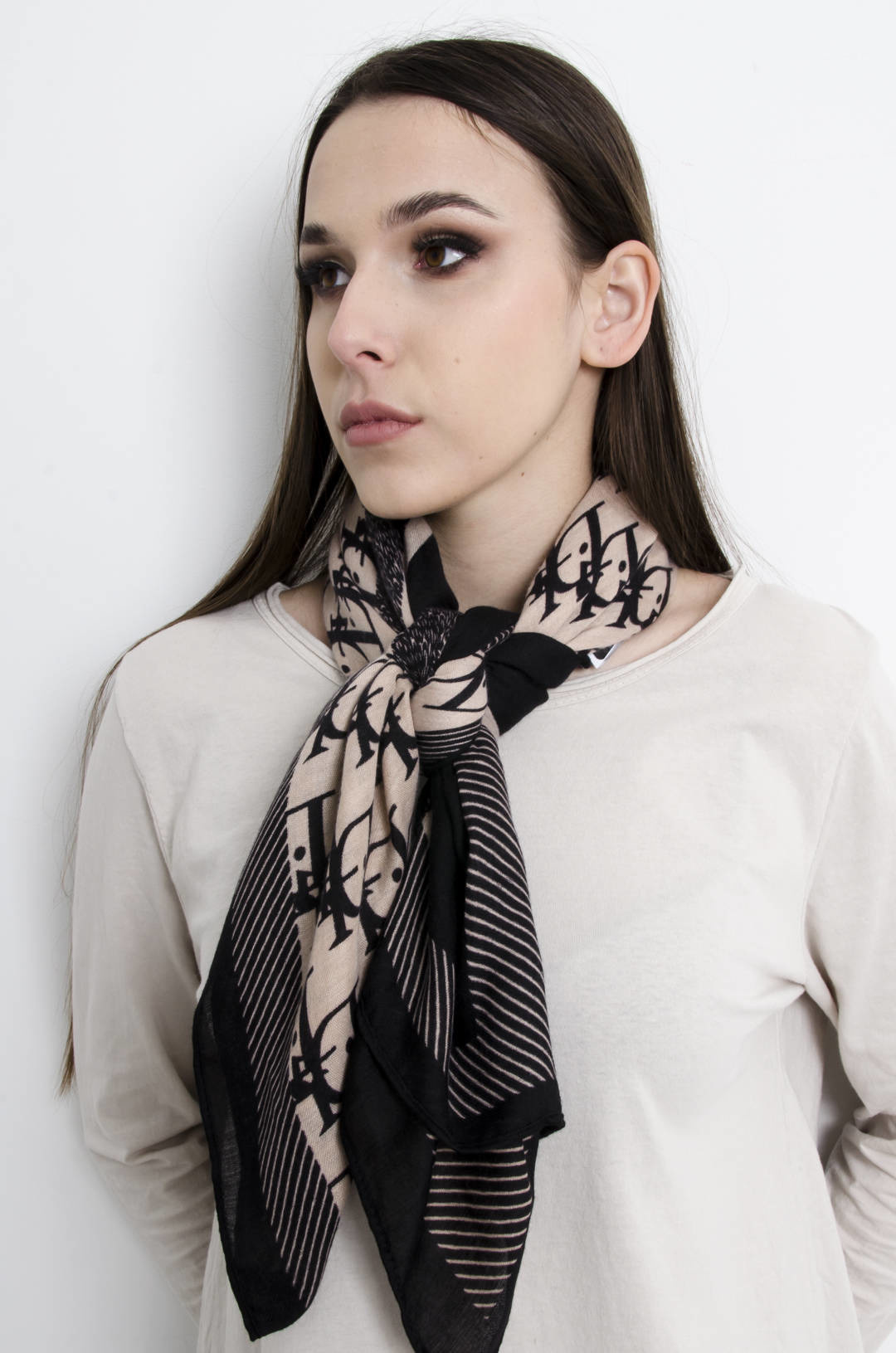 BEŻOWO-CZARNY WZORZYSTY SZAL