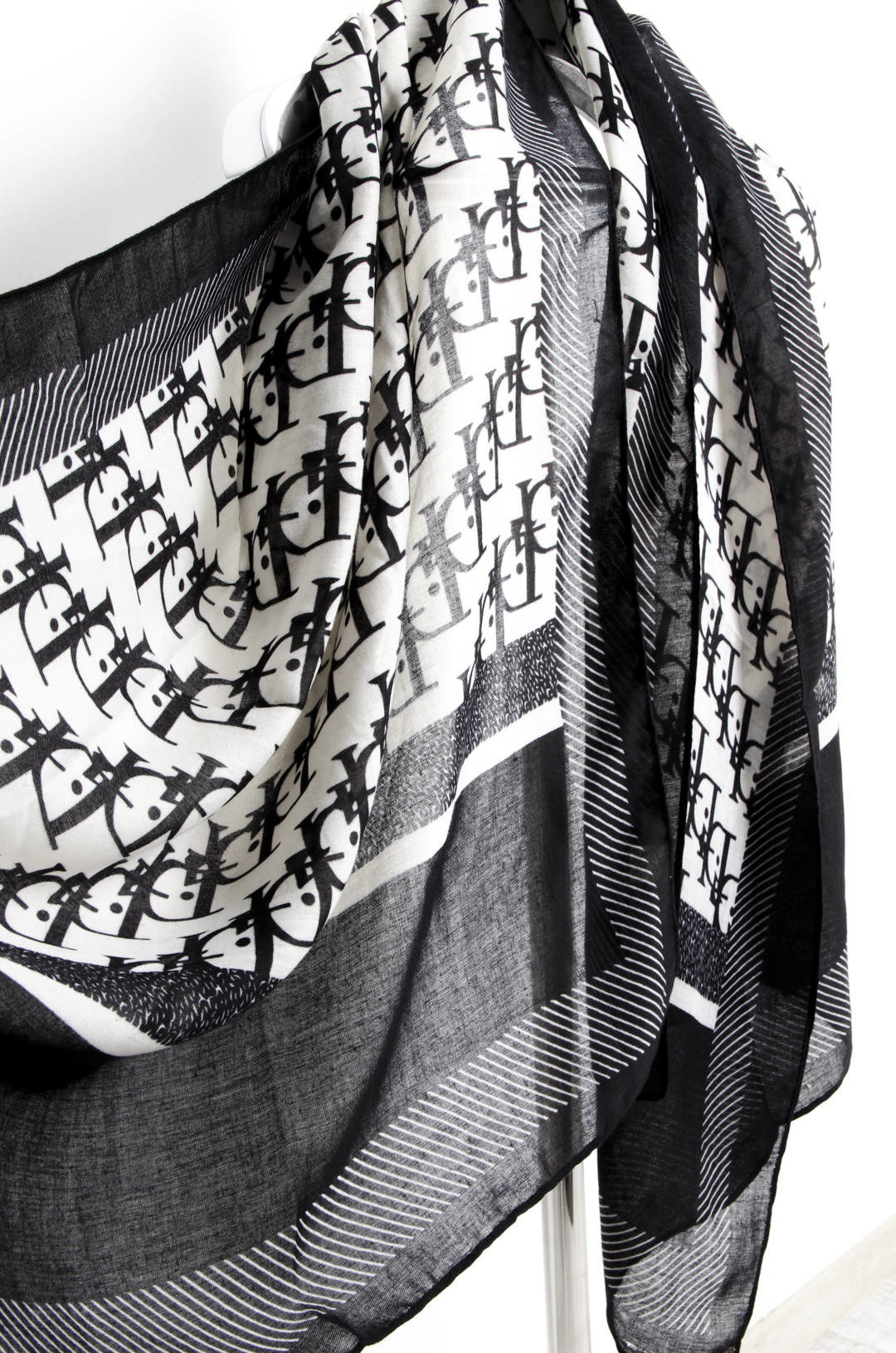 SZAL BIAŁO-CZARNY WZORZYSTY