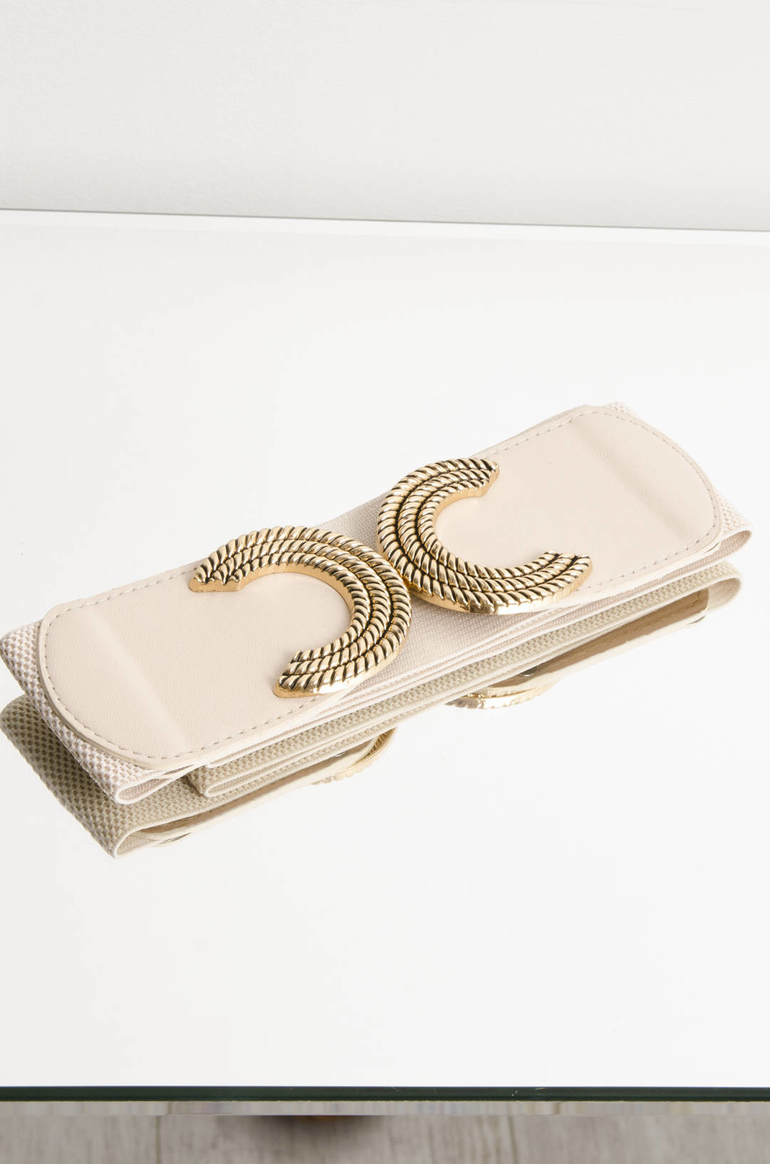 PASEK NA GUMIE-ZŁOTE PLECIONE ZAPIĘCIE- BEŻOWY