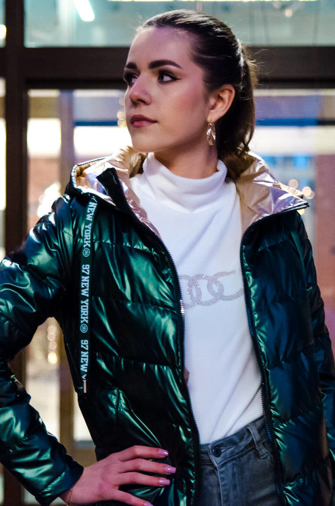 KURTKA WIOSENNA PIKOWANA Z KAPTUREM - ZIELONA