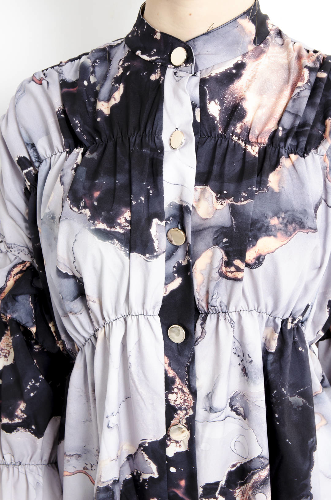 KOSZULA  MARMURKOWA Z FALBANAMI NA RĘKAWACH - CZARNA
