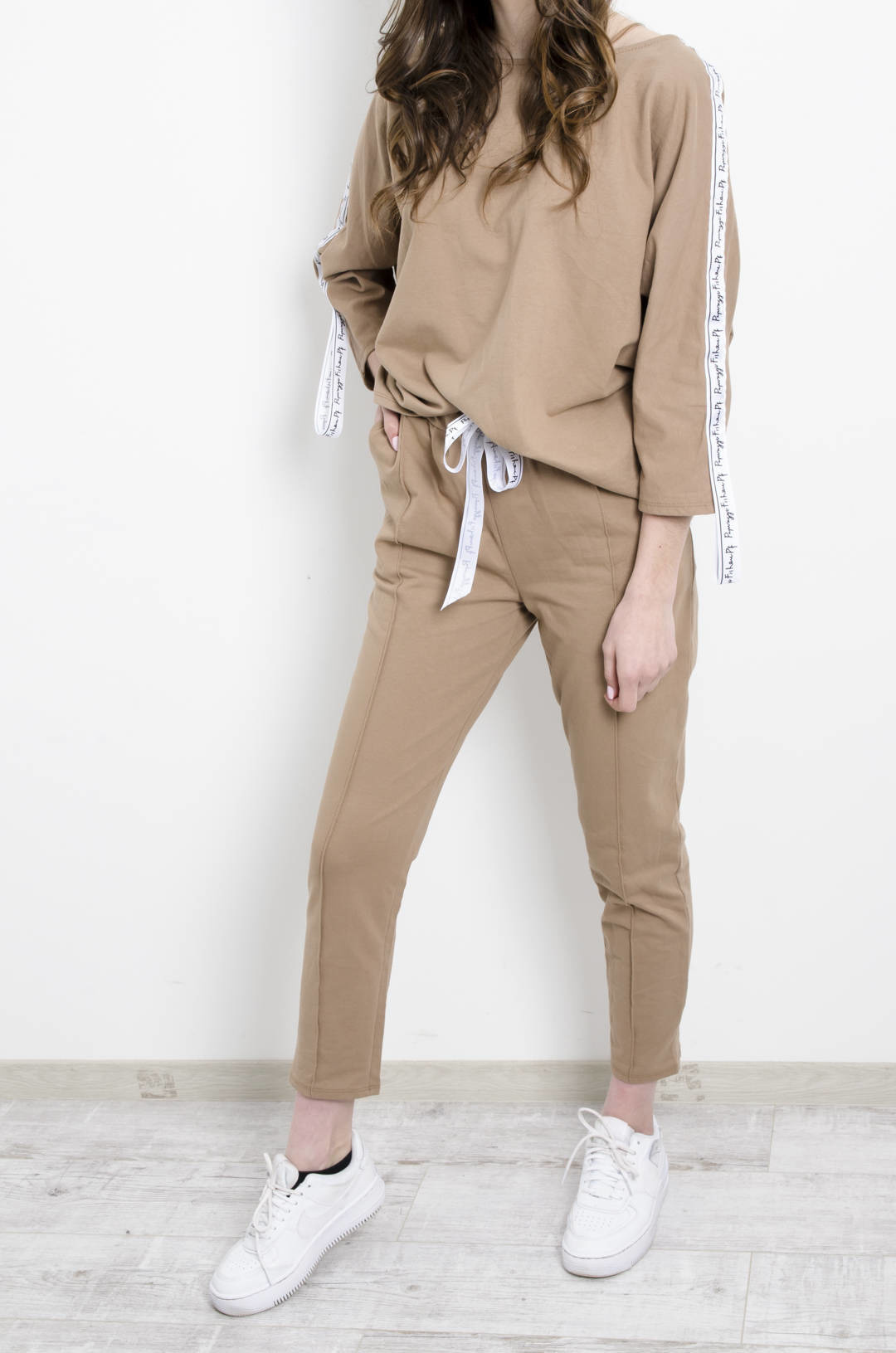 KOMPLET BAWEŁNIANY BRĄZOWY Z LAMPASEM