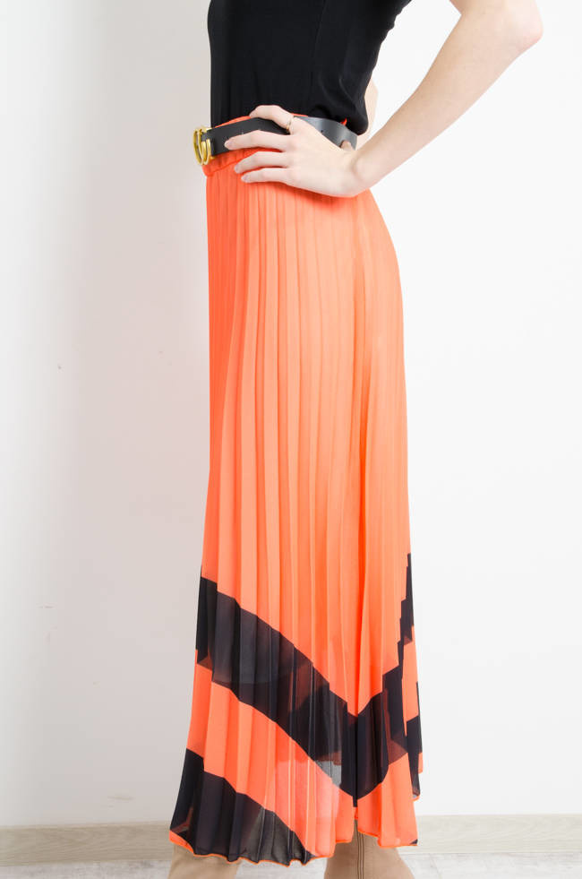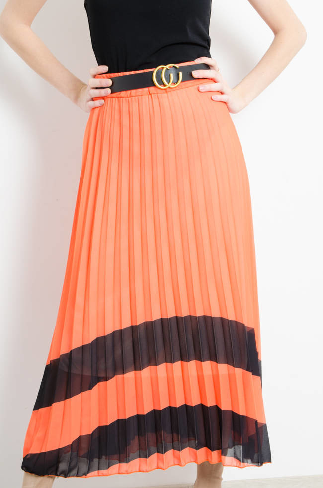 SPÓDNICA PLISOWANA Z PASKIEM - POMARAŃCZOWA