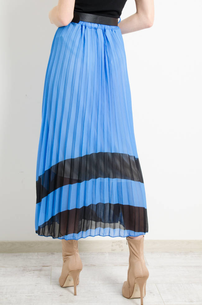 SPÓDNICA PLISOWANA Z PASKIEM - GRANATOWA