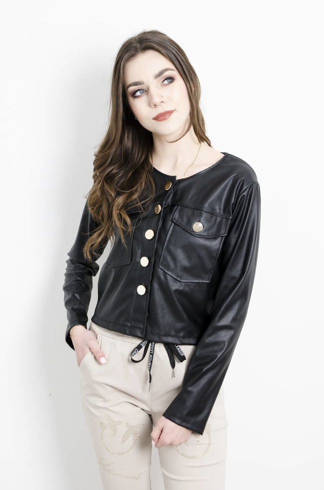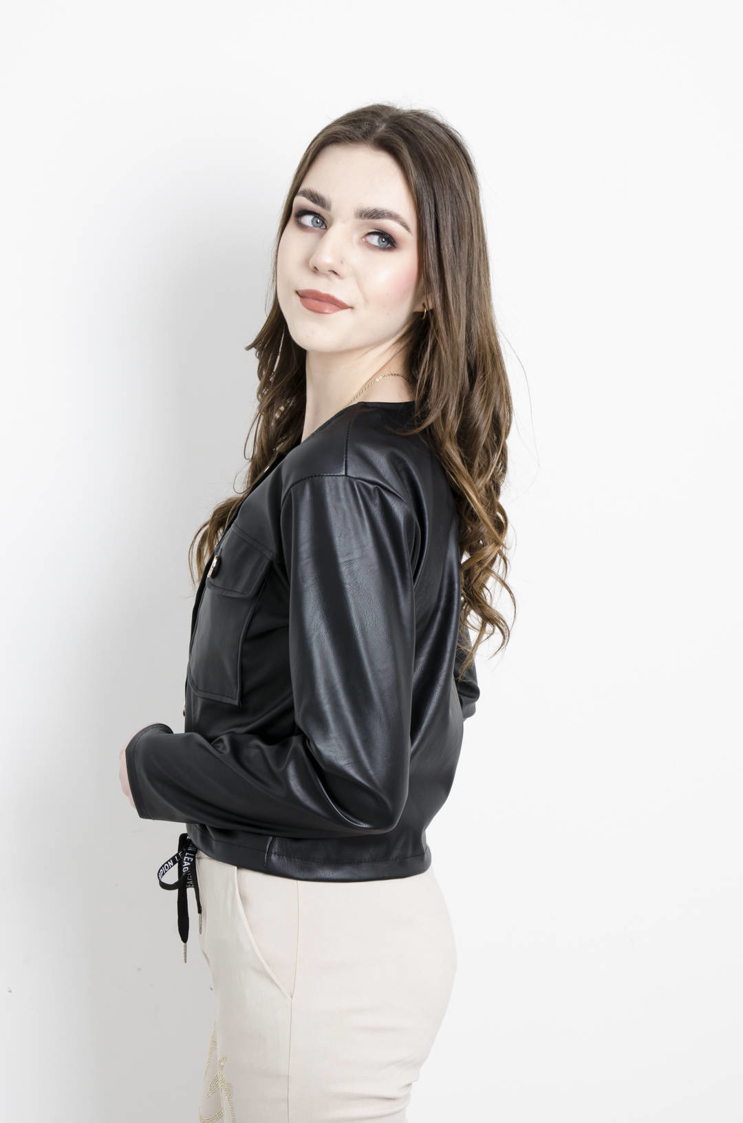 ŻAKIET Z IMITACJI SKÓRY W KOLRZE CZARNYM