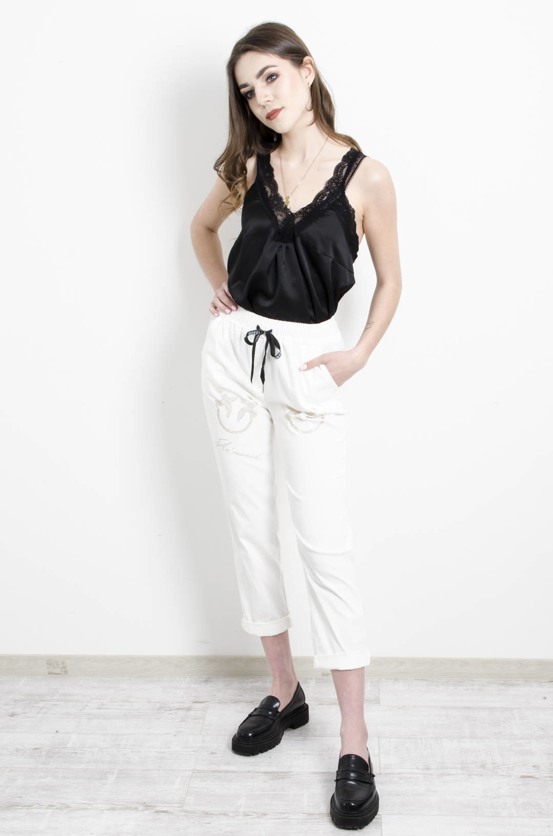 SATYNOWY TOP NA RAMIACZKACH WYKOŃCZONY KORONKĄ