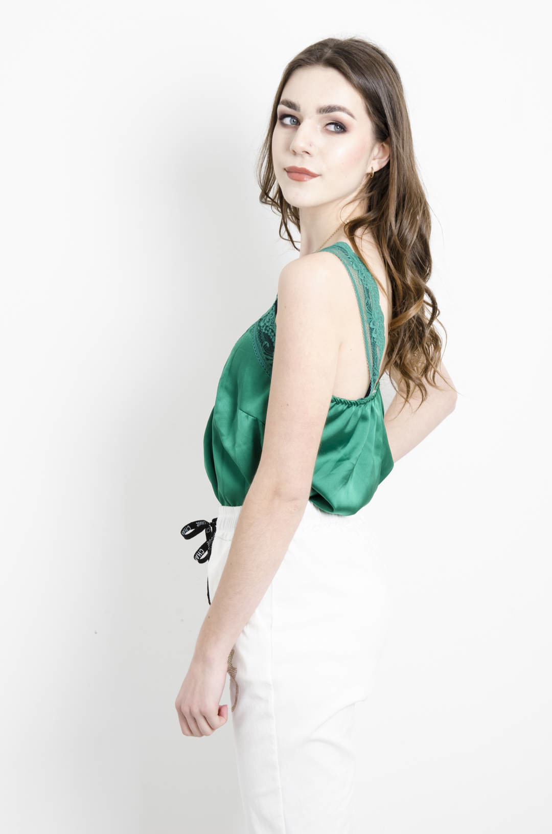 SATYNOWY TOP NA RAMIACZKACH WYKOŃCZONY KORONKĄ