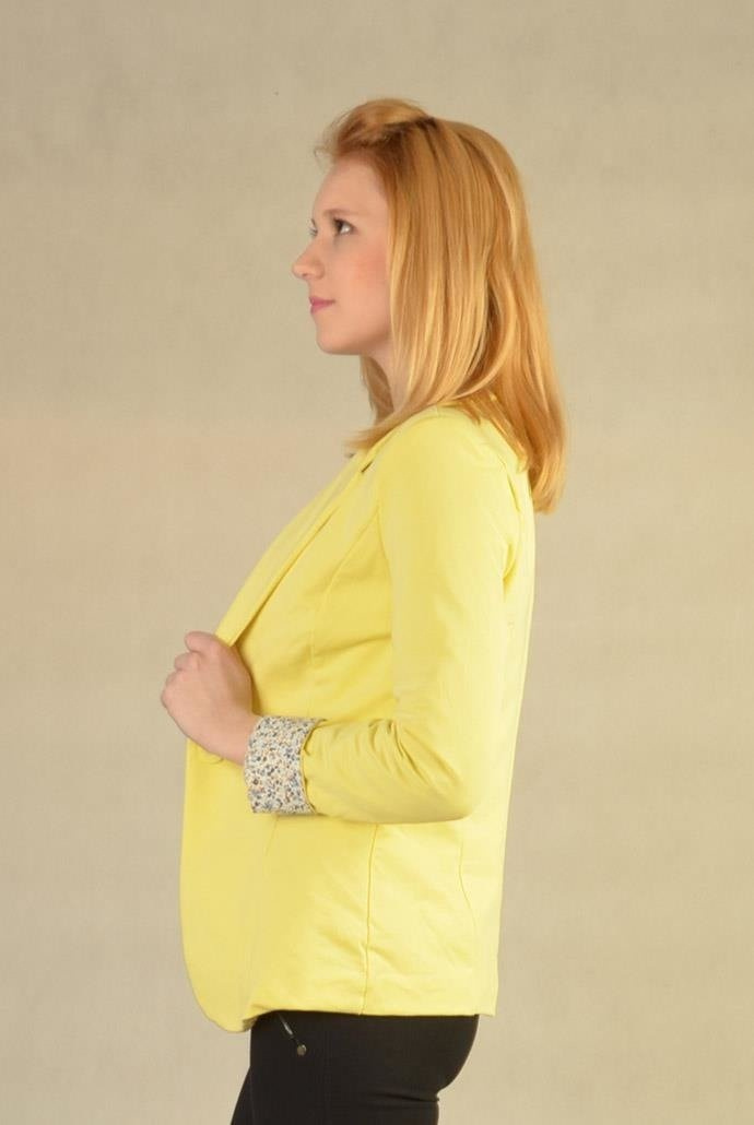 Elegancki żakiet w modnym wyrazistym kolorze. Taliowany, zapinany na jeden guzik. Świetnie podkreśla kobiecą sylwetkę, będzie idealnym uzupełnieniem zarówno codziennych jak i eleganckich stylizacji.