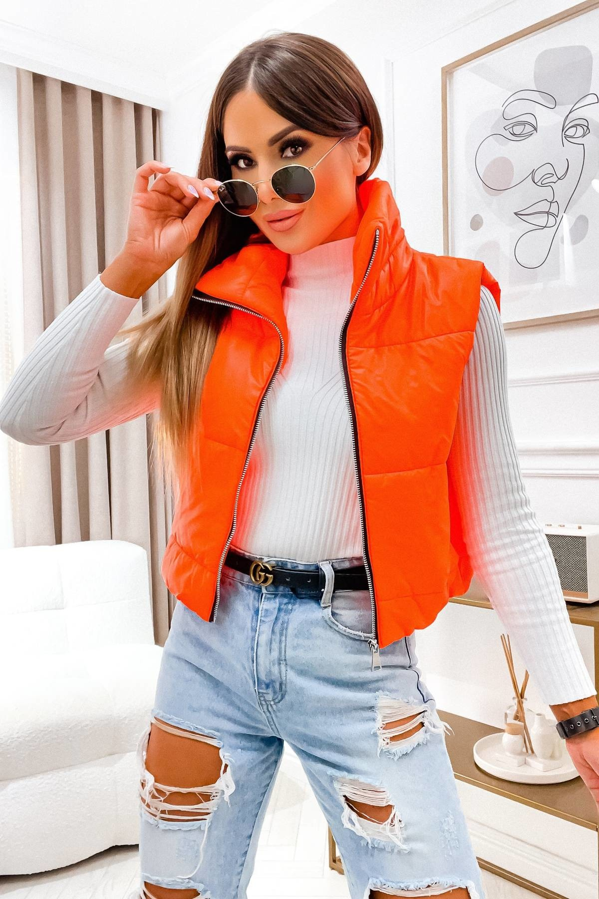 KAMIZELKA PIKOWANA KRÓTKA- POMARAŃCZOWA