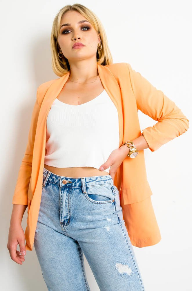 RÓŻOWA MARYNARKA BEZ ZAPIECIA Z MARSZCZONYMI RĘKAWAMI