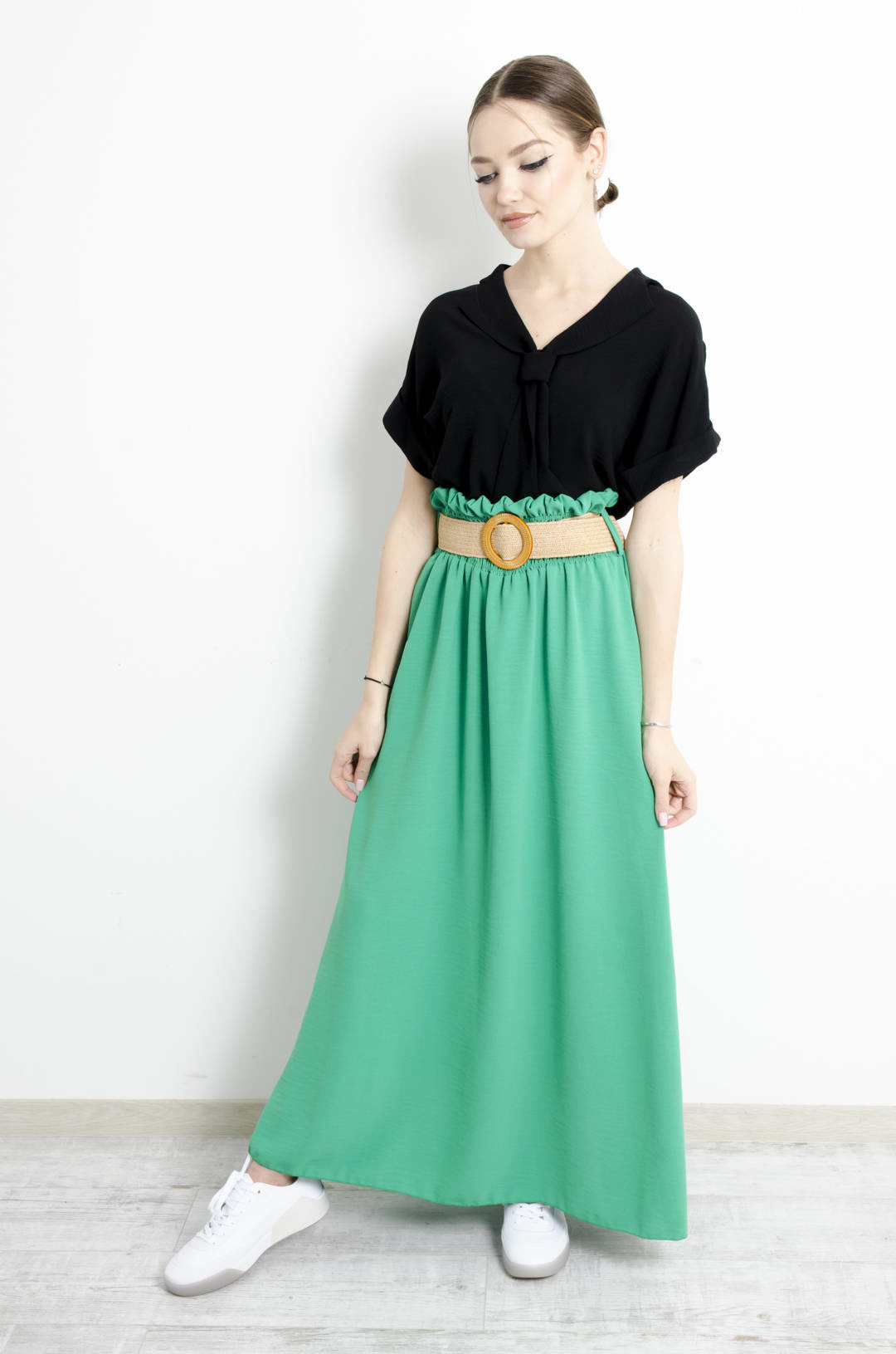 SPÓDNICA MAXI Z GUMĄ + PASEK ZIELONA