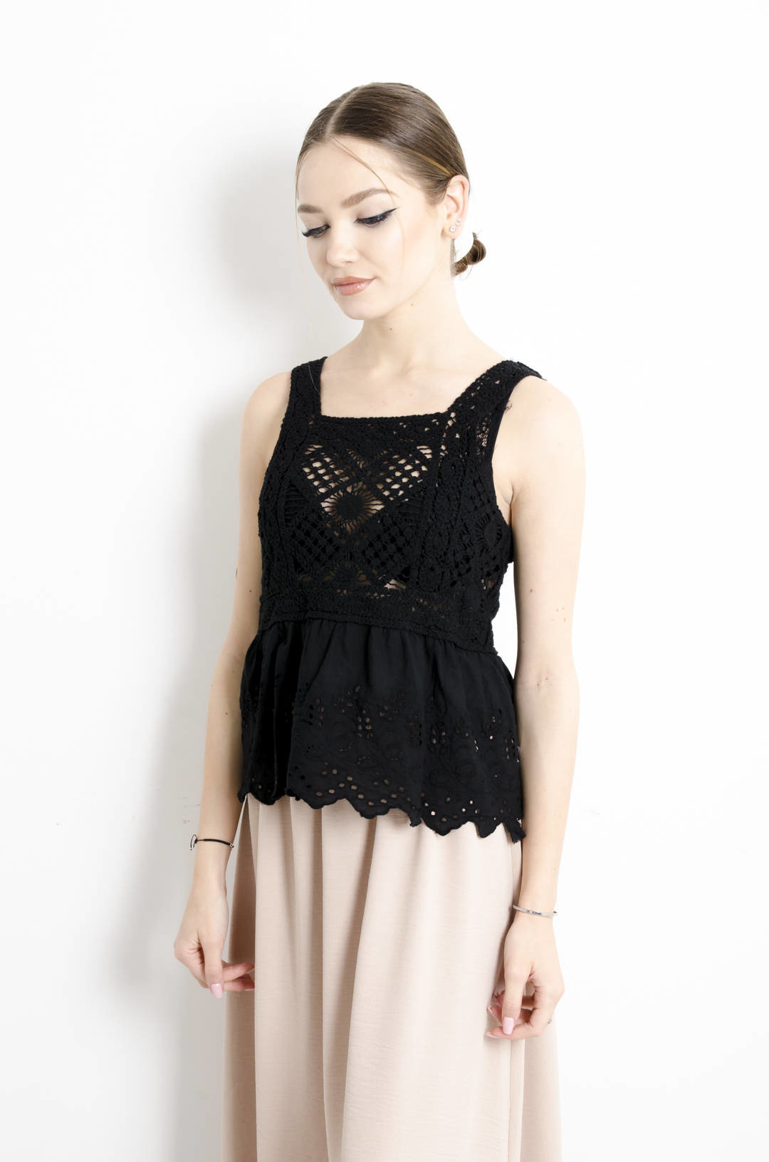 AŻUROWA BLUZKA Z KORONKĄ - CZARNA