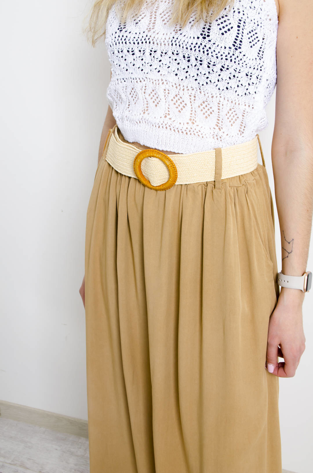 SPÓDNICA MAXI Z KIESZENIAMI I PLECIONYM PASKIEM- BRĄZOWA