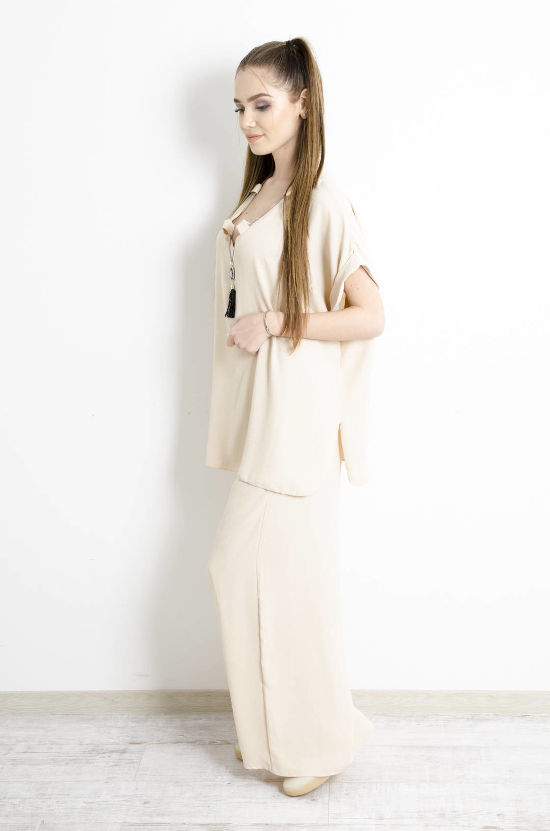 KOMPLET BEŻOWY Z OZDOBNYM WISIORKIEM