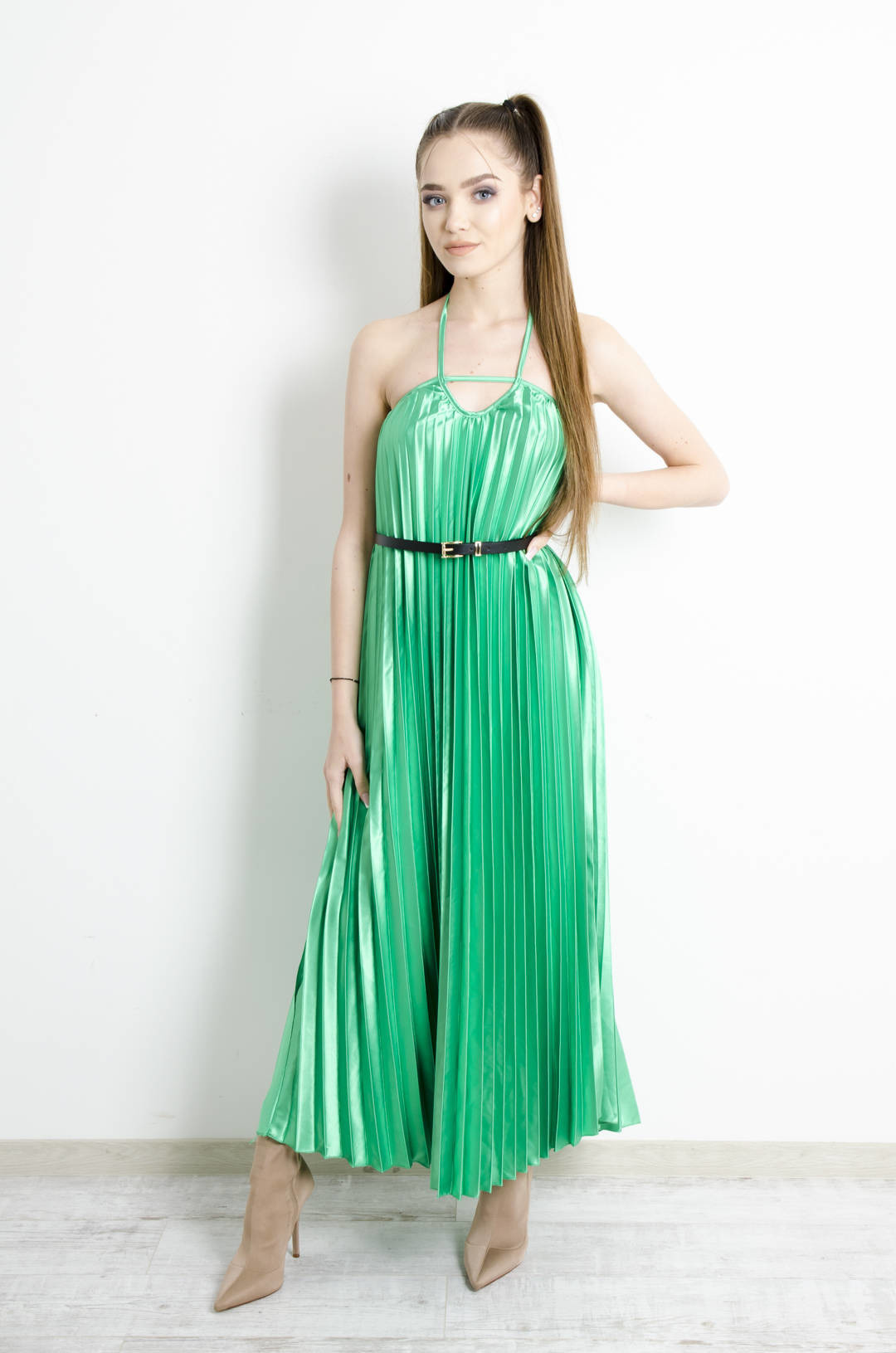 SUKIENKA ZIELONA PLISOWANA Z PASKIEM