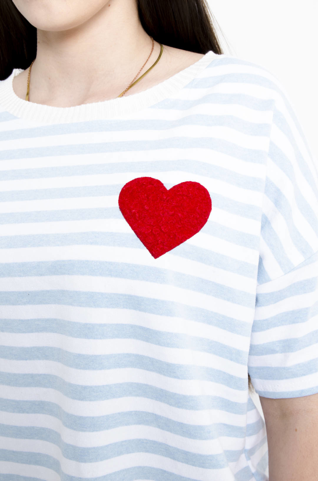 T-SHIRT BIAŁO-NIEBIESKI W PASKI Z SERDUSZKIEM