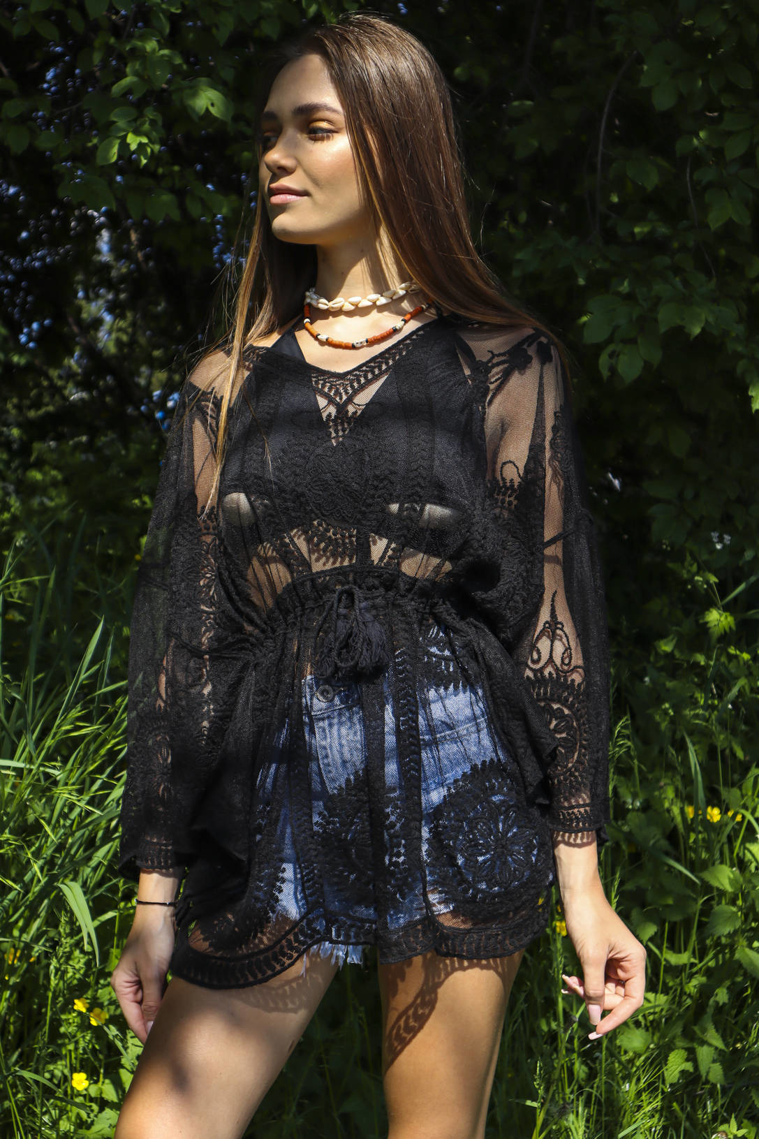 BLUZKA Z SIATKI HAFTOWANA BOHO