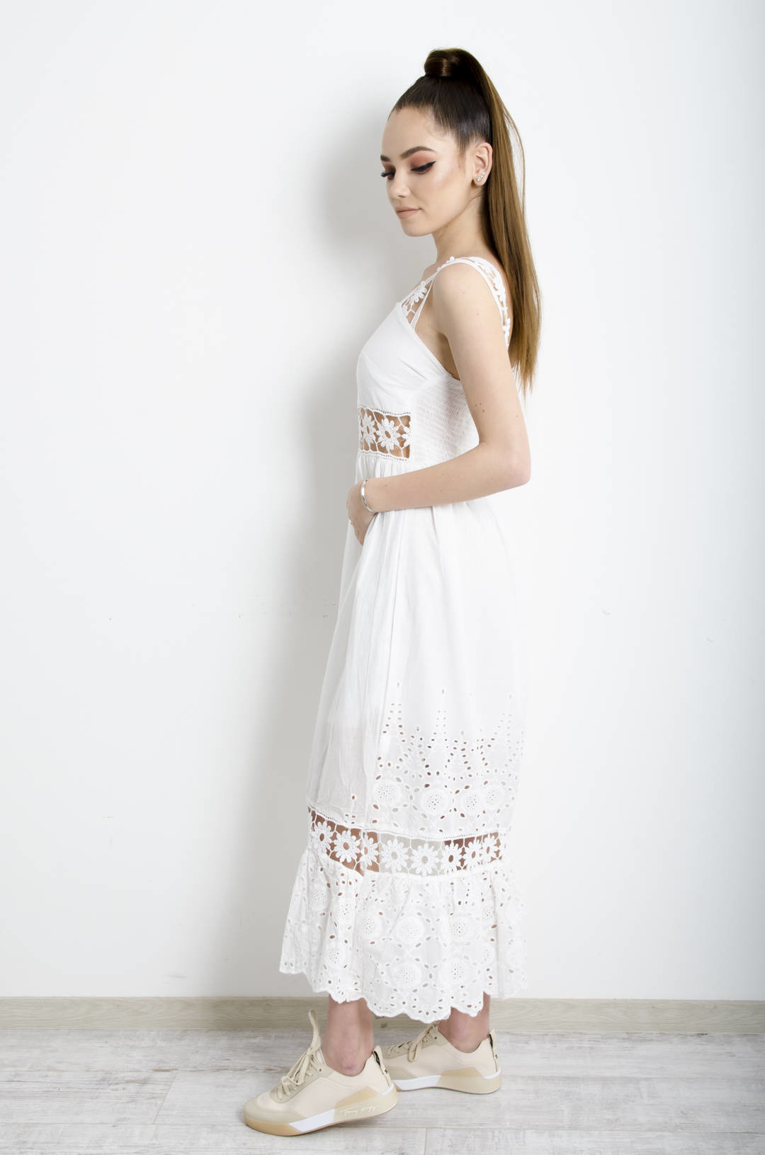 SUKIENKA MAXI Z AŻUROWYMI WSTAWKAMI