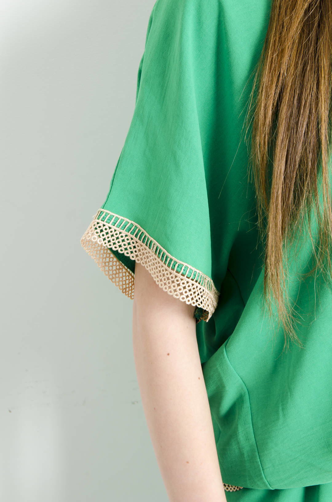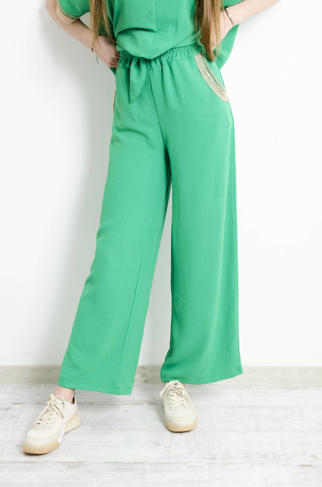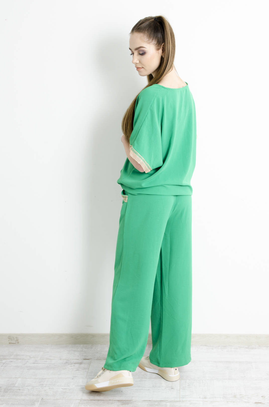 KOMPLET ZIELONY Z OZDOBNYM WIĄZANIEM I KORONKĄ