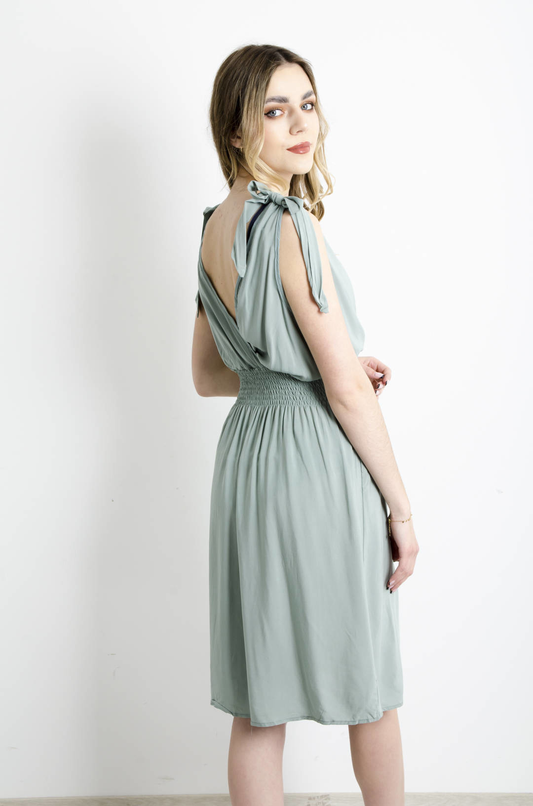 SUKIENKA Z WIĄZANIAMI PRZY RĘKAWACH- ZIELONA