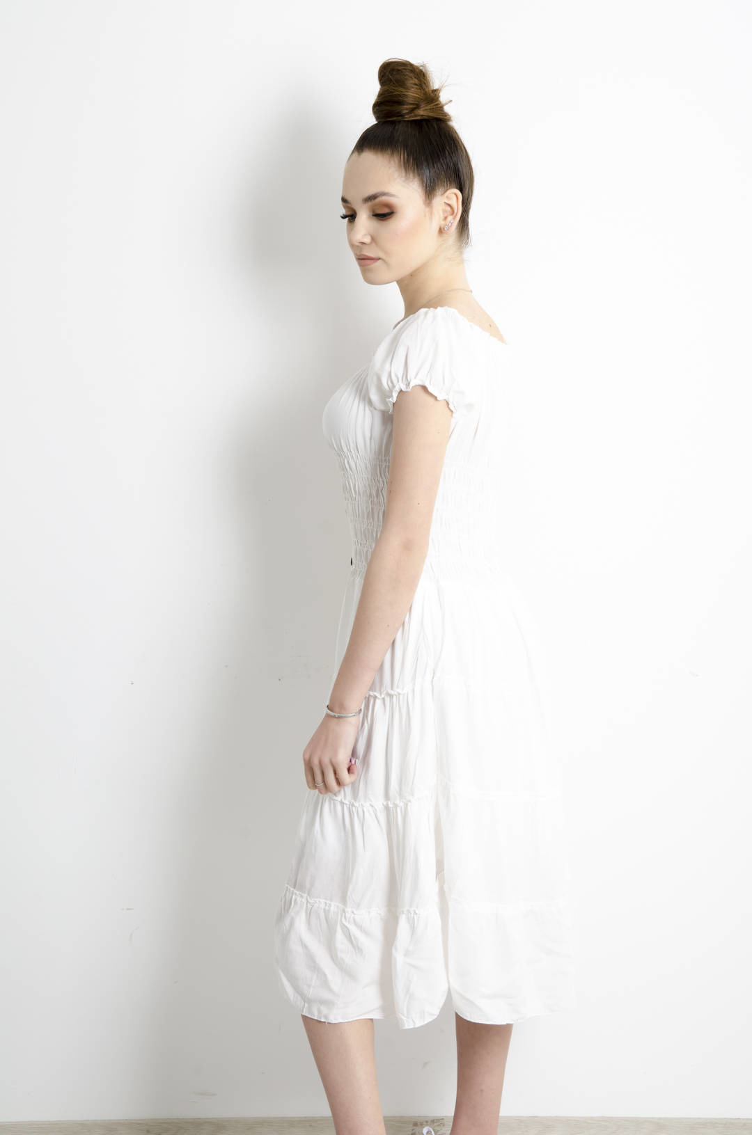 SUKIENKA HISZPANKA MIDI Z GUMĄ W PASIE- BIAŁA