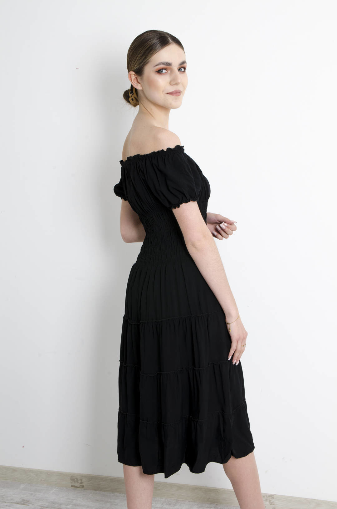 SUKIENKA HISZPANKA MIDI Z GUMĄ W PASIE- CZARNA