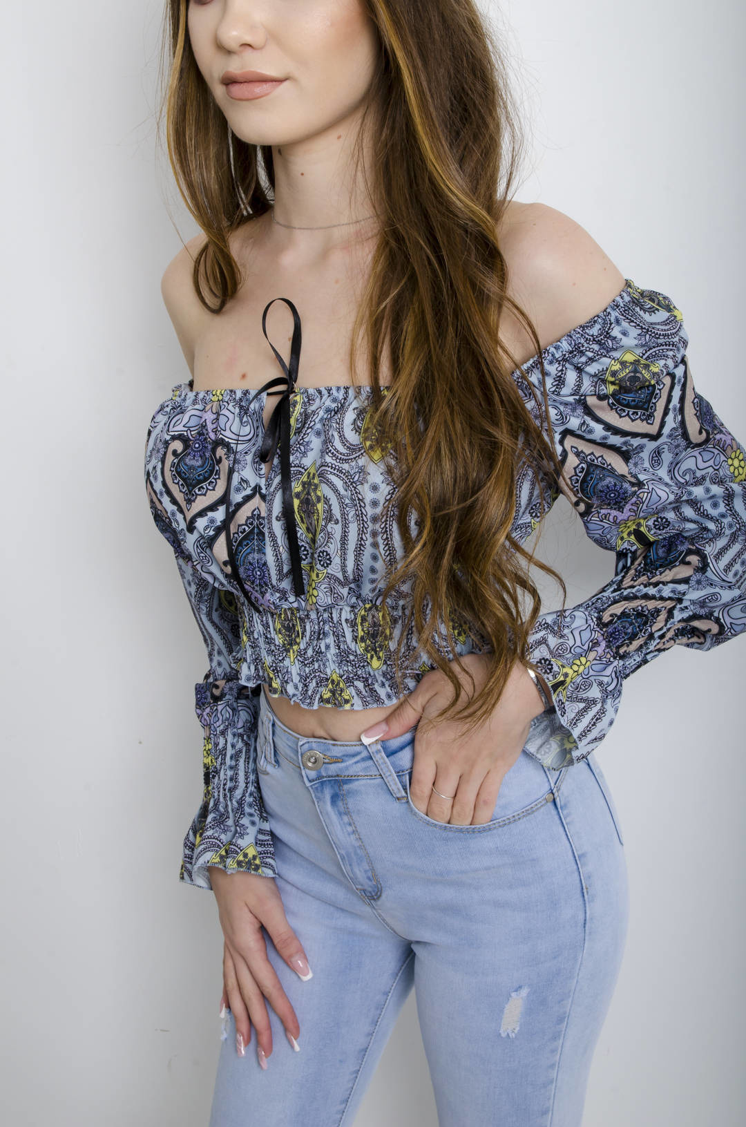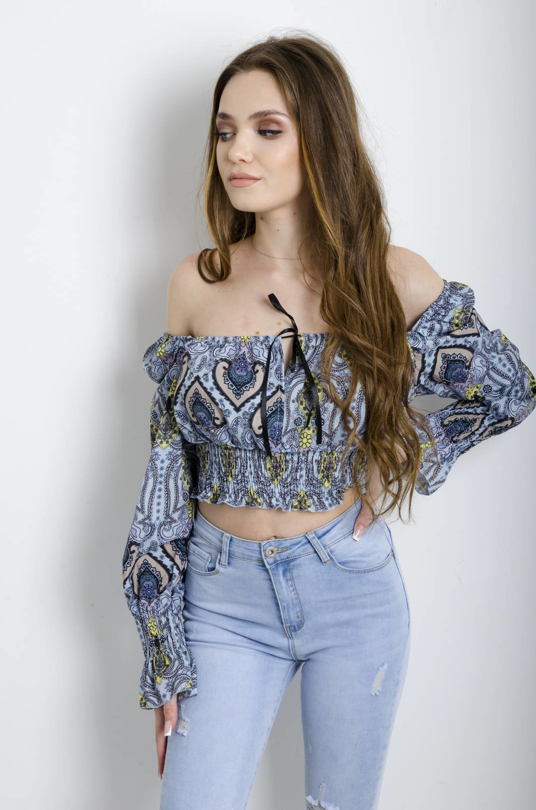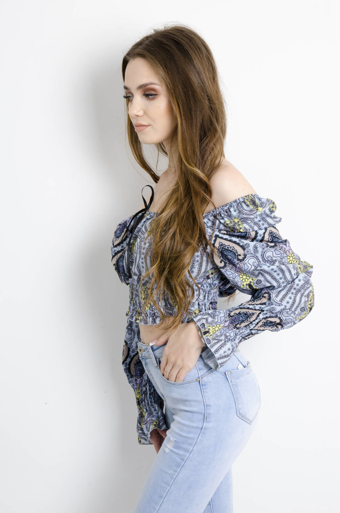 BLUZKA HISZPANKA NIEBIESKA Z WIĄZANIEM
