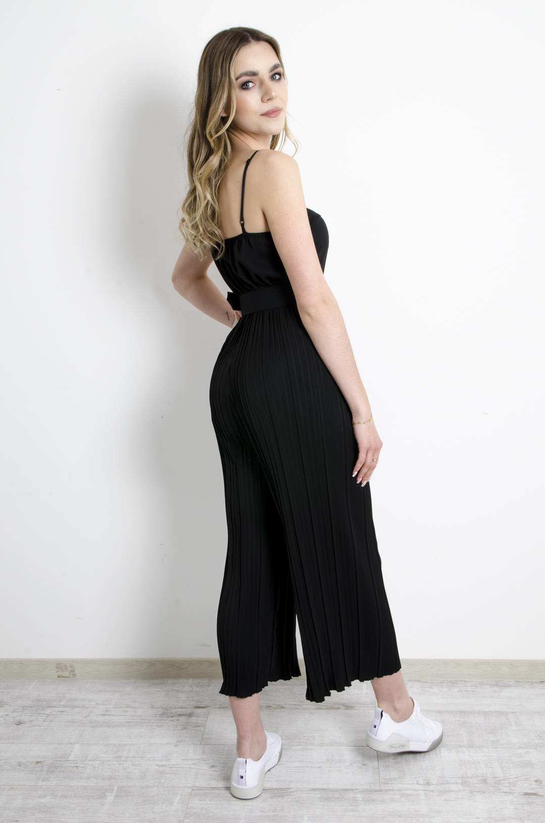 KOMBINEZON GORSETOWY Z PLISOWANYMI NOGAWKAMI CZARNY
