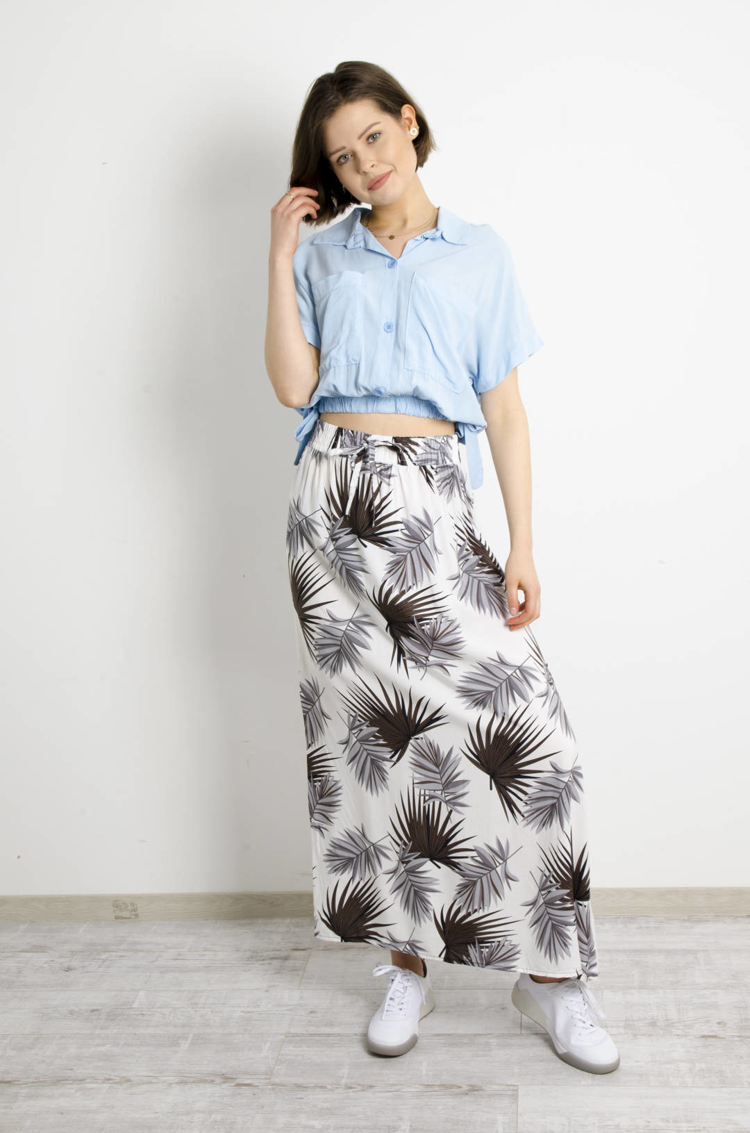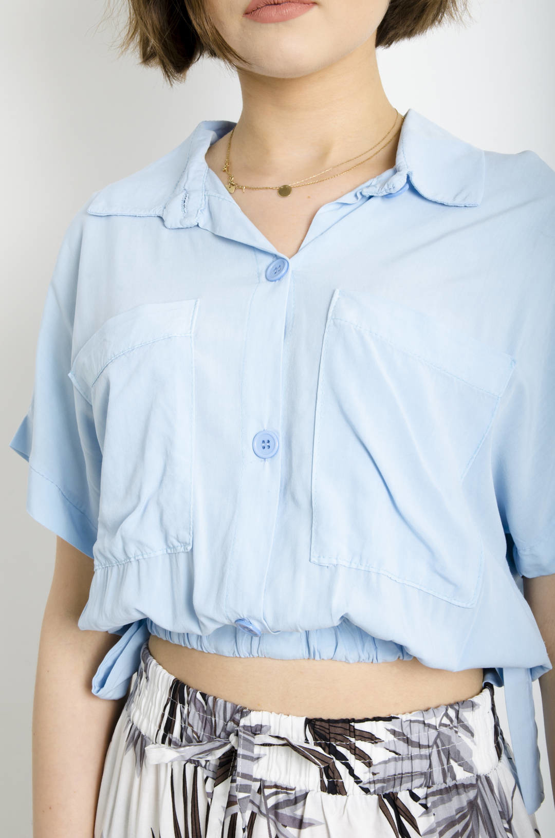 KOSZULA WIĄZANA Z KIESZENIAMI - NIEBIESKA
