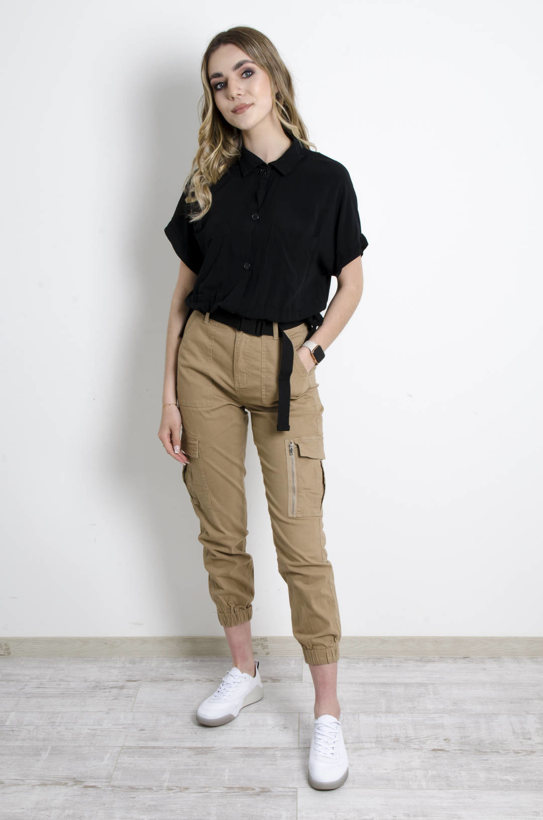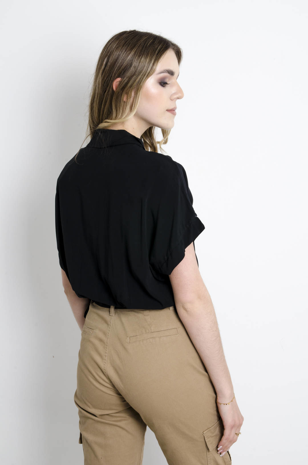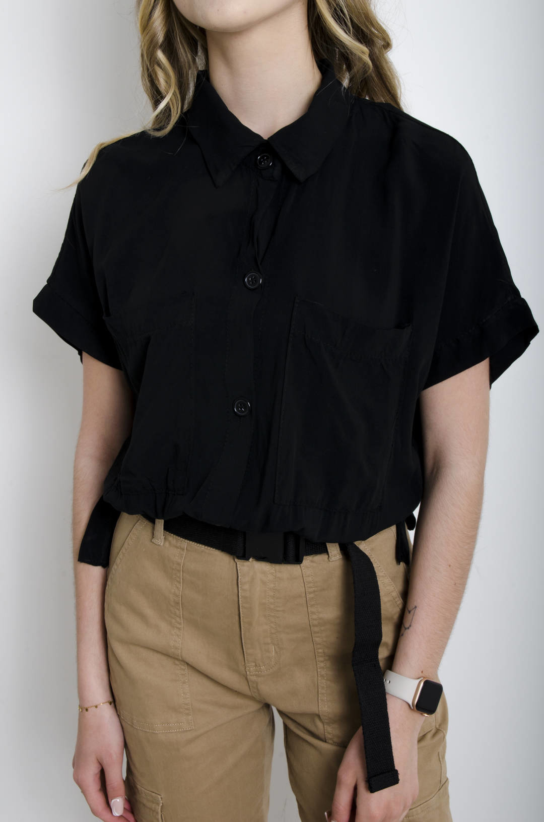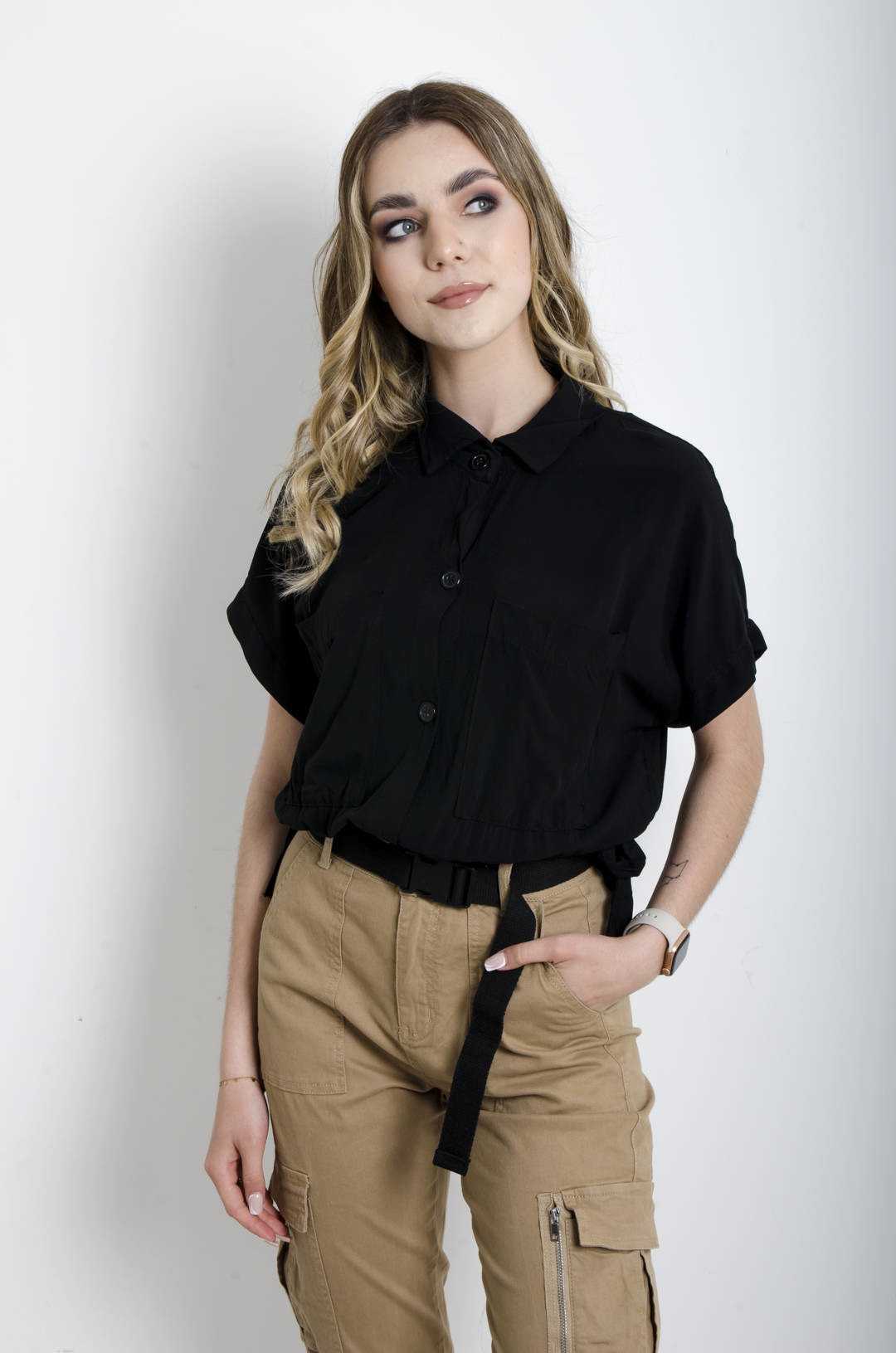 KOSZULA WIĄZANA Z KIESZENIAMI - CZARNA