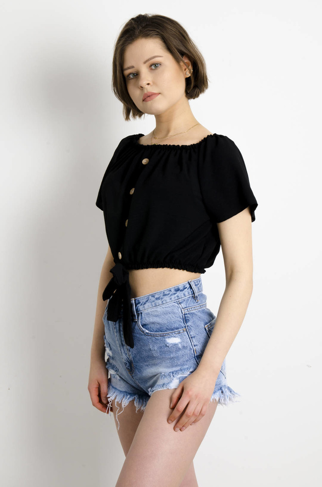 BLUZKA HISZPANKA Z WIĄZANIEM - CZARNA