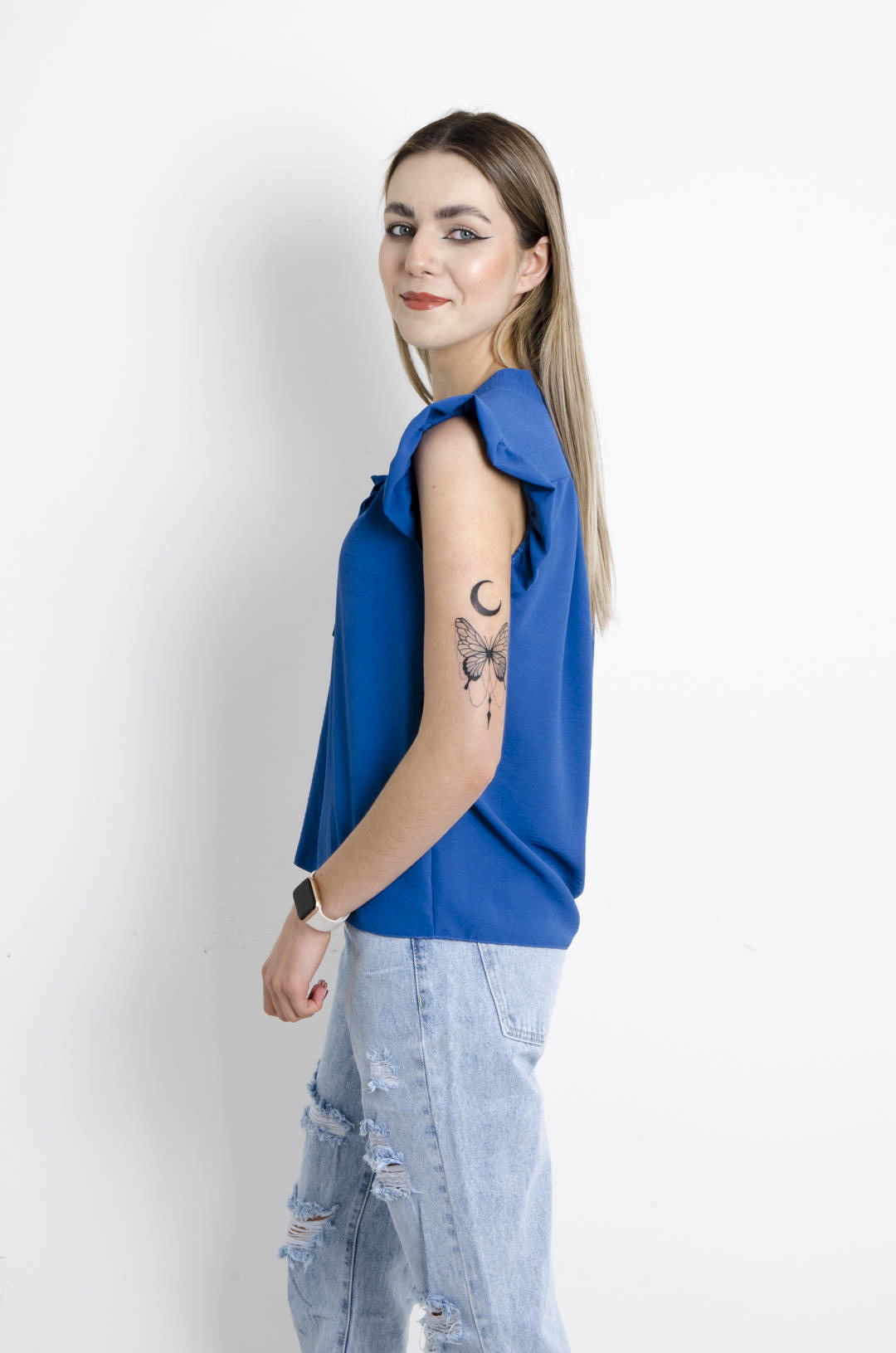 BLUZKA Z WIĄZANIEM GRANATOWA