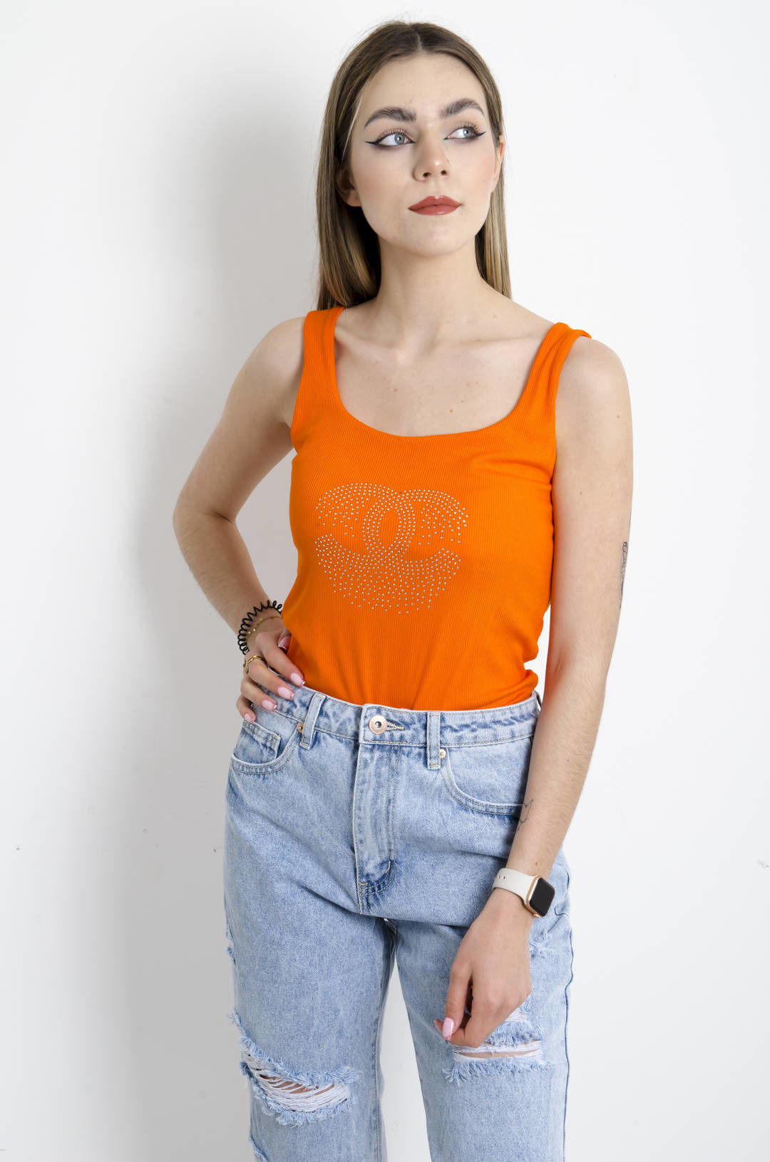 BODY PRĄŻKOWANE Z APLIKACJĄ- POMARAŃCZOWE