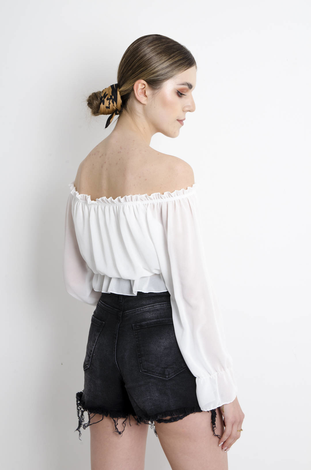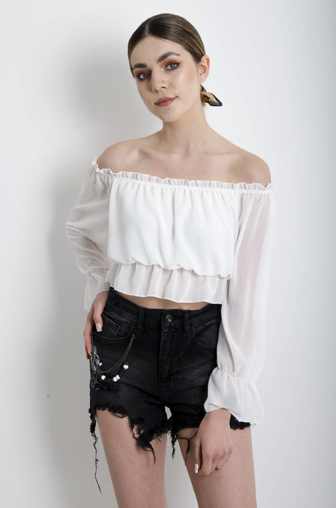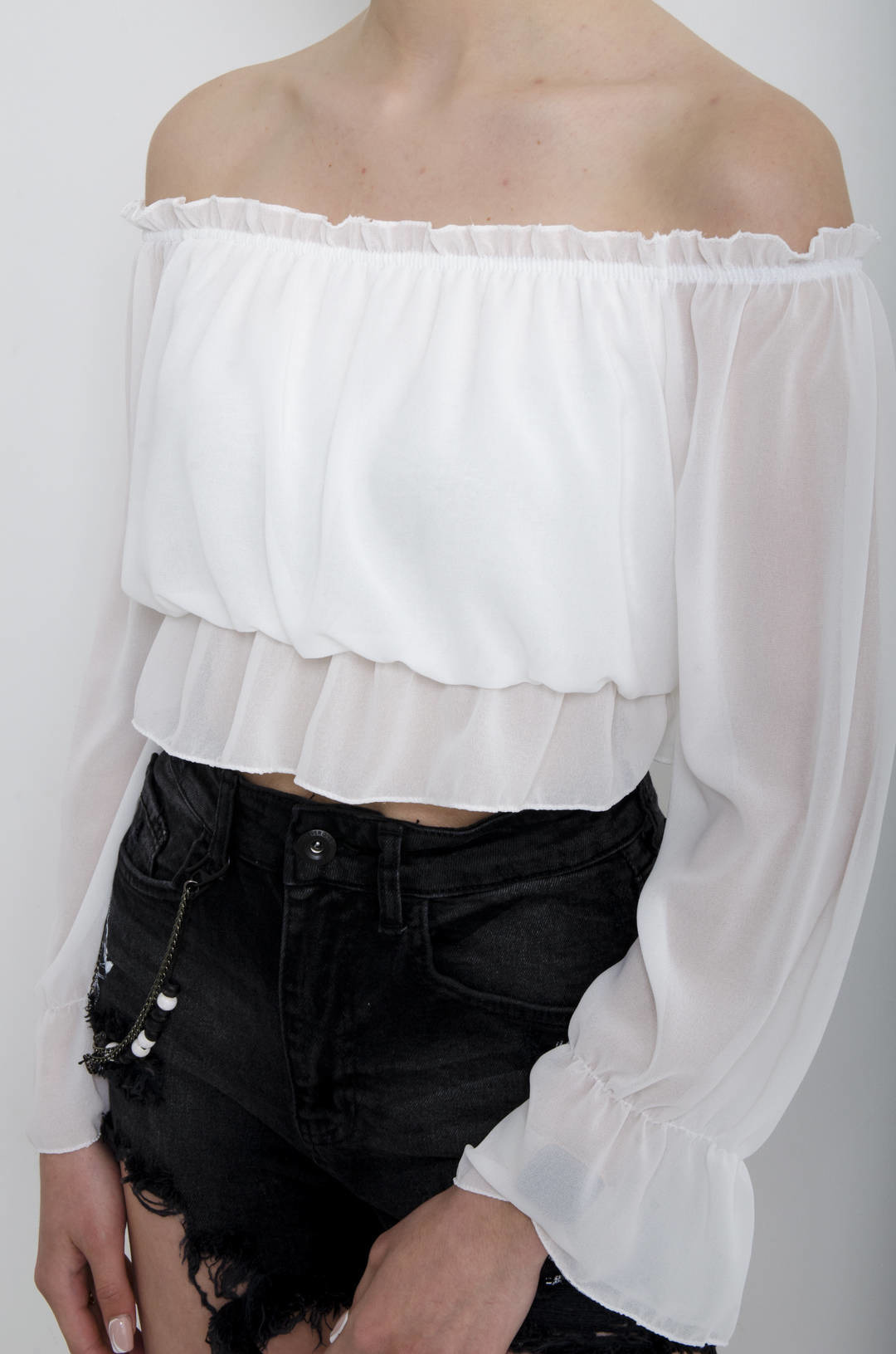 BLUZKA HISZPANKA NA DŁUGI RĘKAW - BIAŁA