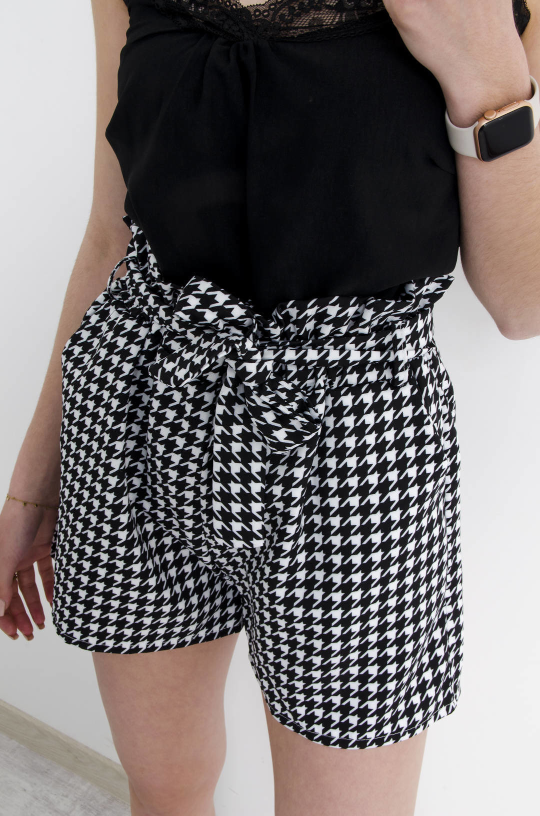 SZORTY WIĄZANE Z WYSOKIM STANEM W PEPITKĘ - CZARNE
