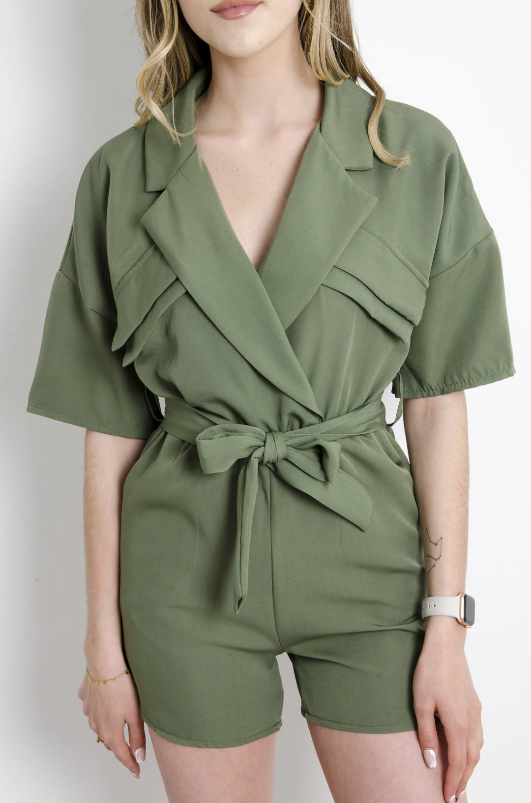 KOMBINEZON ELEGANCKI WIĄZANY W PASIE - ZIELONY