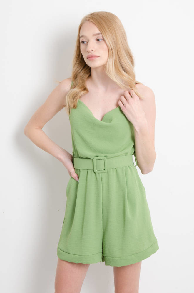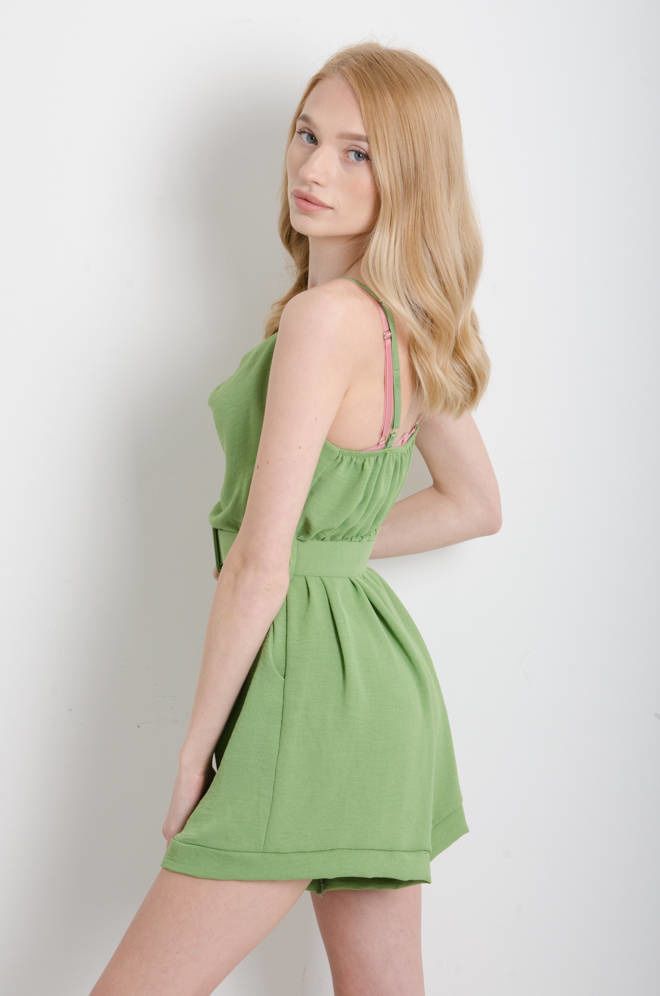 KOMBINEZON NA CIENKICH RAMIĄCZKACH Z PASKIEM- ZIELONY