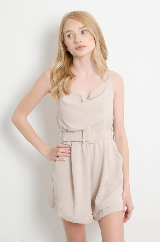 KOMBINEZON NA CIENKICH RAMIĄCZKACH Z PASKIEM- BEŻOWY