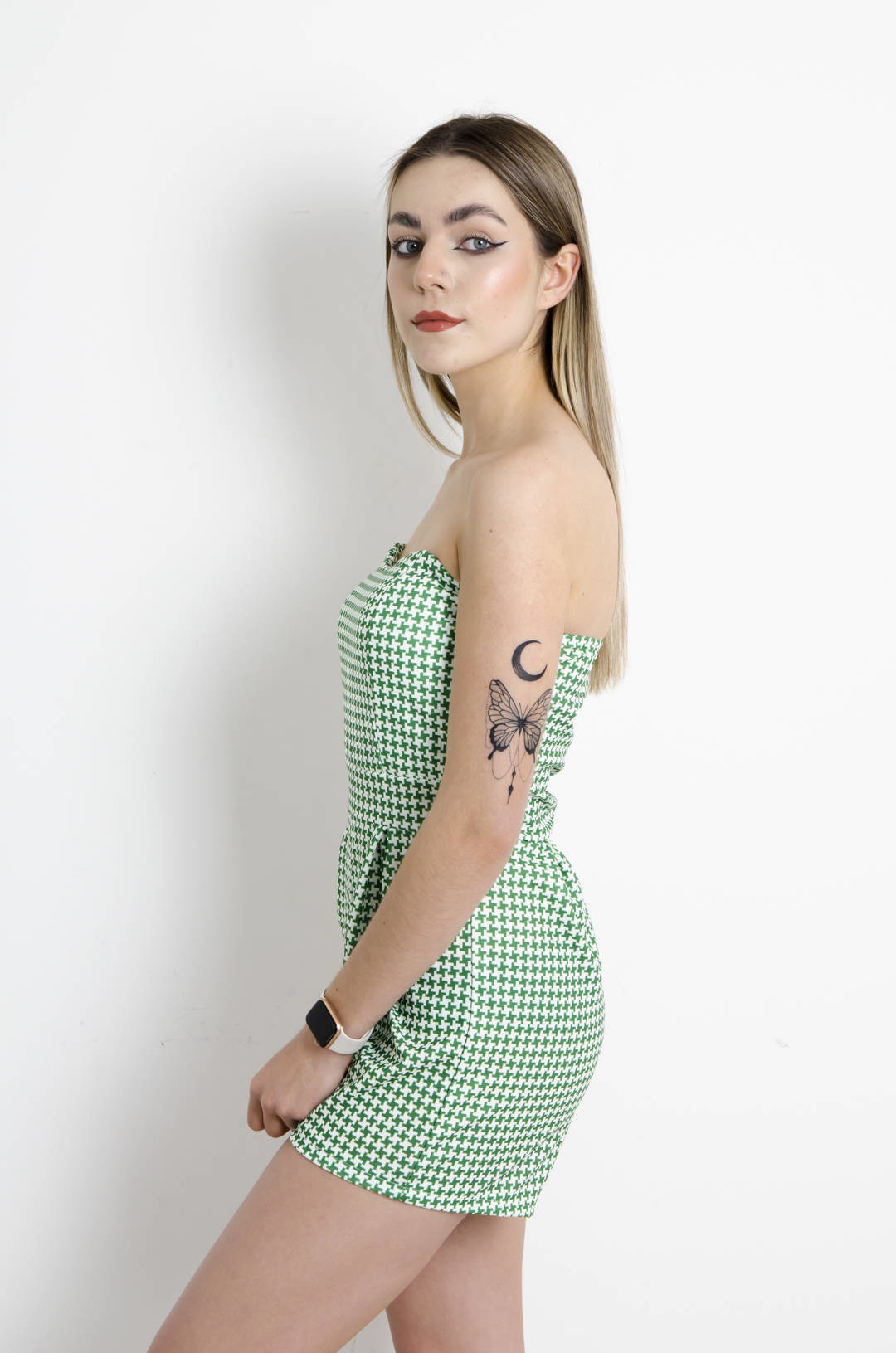 KOMBINEZON GORSETOWY  W PEPITKĘ- ZIELONY