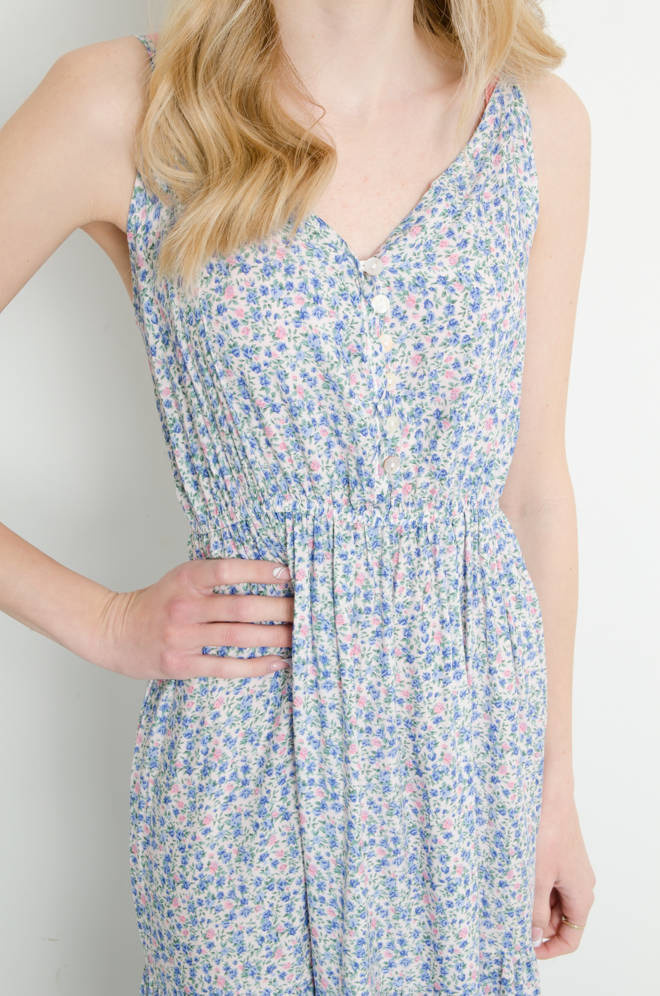 SUKIENKA W KWIATY NA CIENKICH RAMIĄCZKACH MAXI - NIEBIESKA