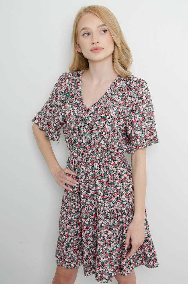 SUKIENKA W KWIATY MINI DEKOLT W SZPIC