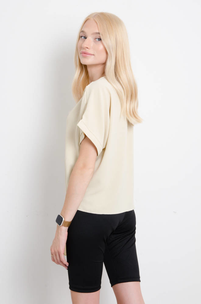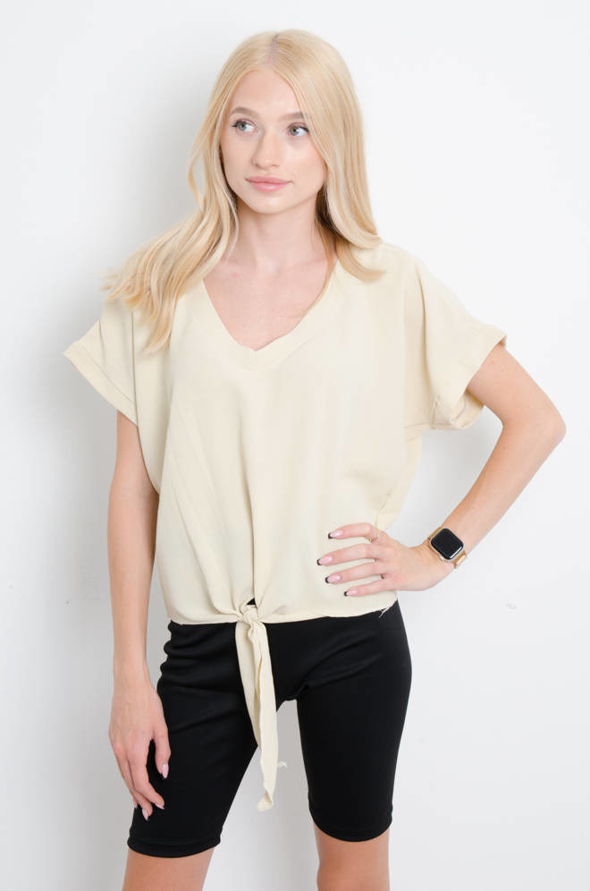 BLUZKA Z WIĄZANIEM DEKOLT V - BEŻOWA