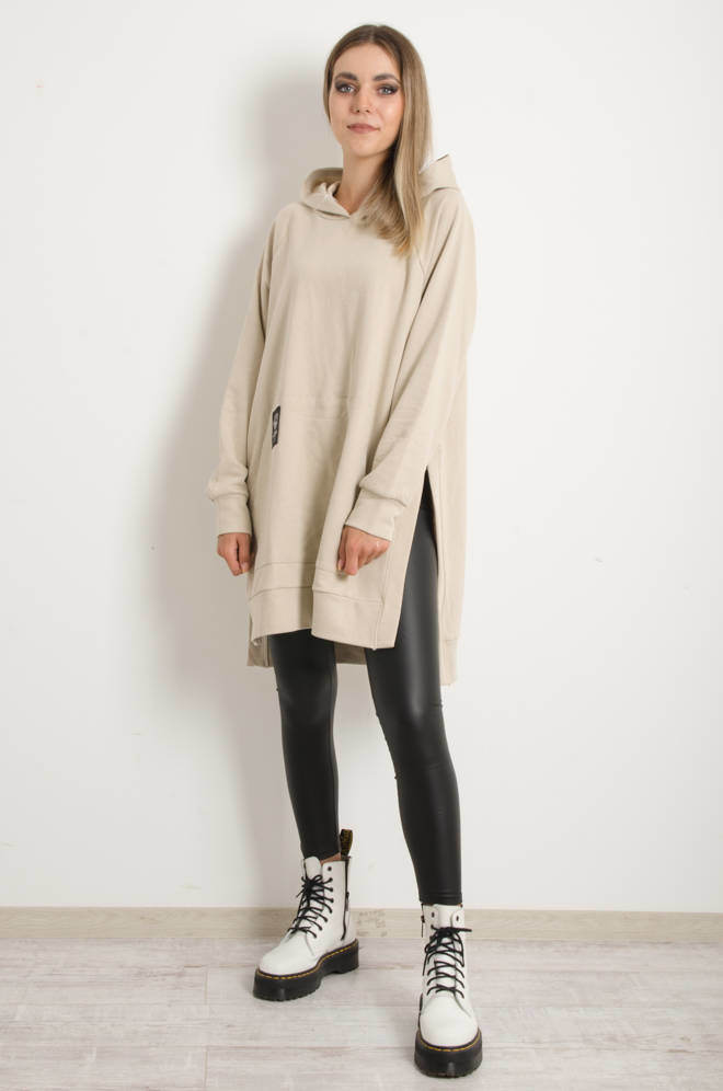DŁUGA BLUZA KANGURKA Z ROZCIĘCIAMI PO BOKACH- BEŻOWA