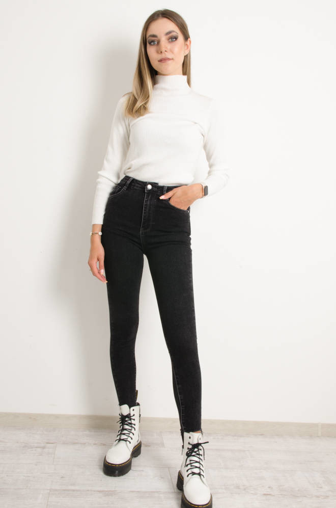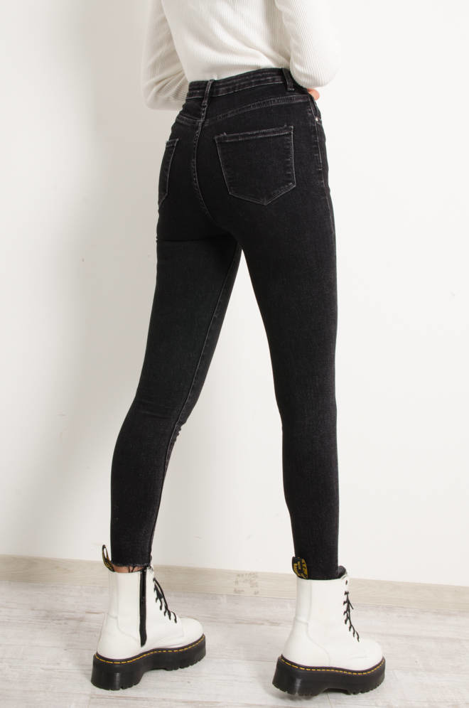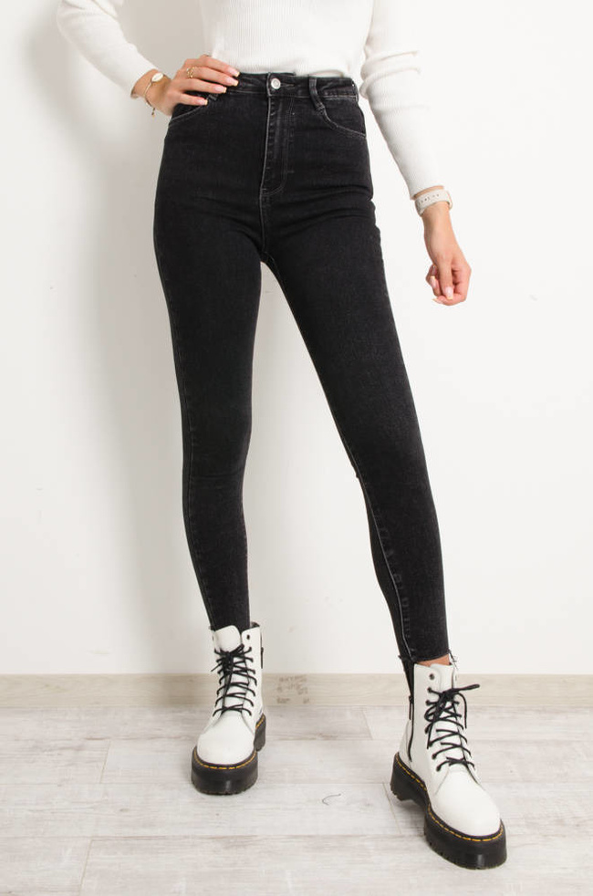 CZARNE DEKATYZOWANE JEANSY- BARDZO WYSOKI STAN