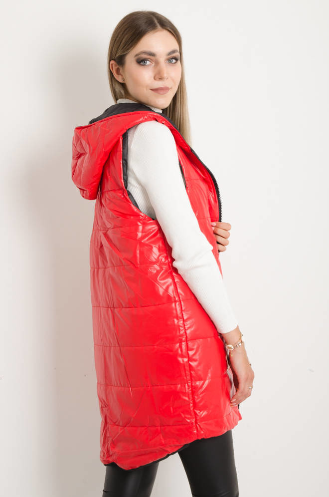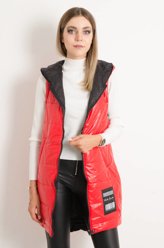 DŁUGA KAMIZELKA Z OZDOBNĄ NASZYWKĄ- CZERWONA
